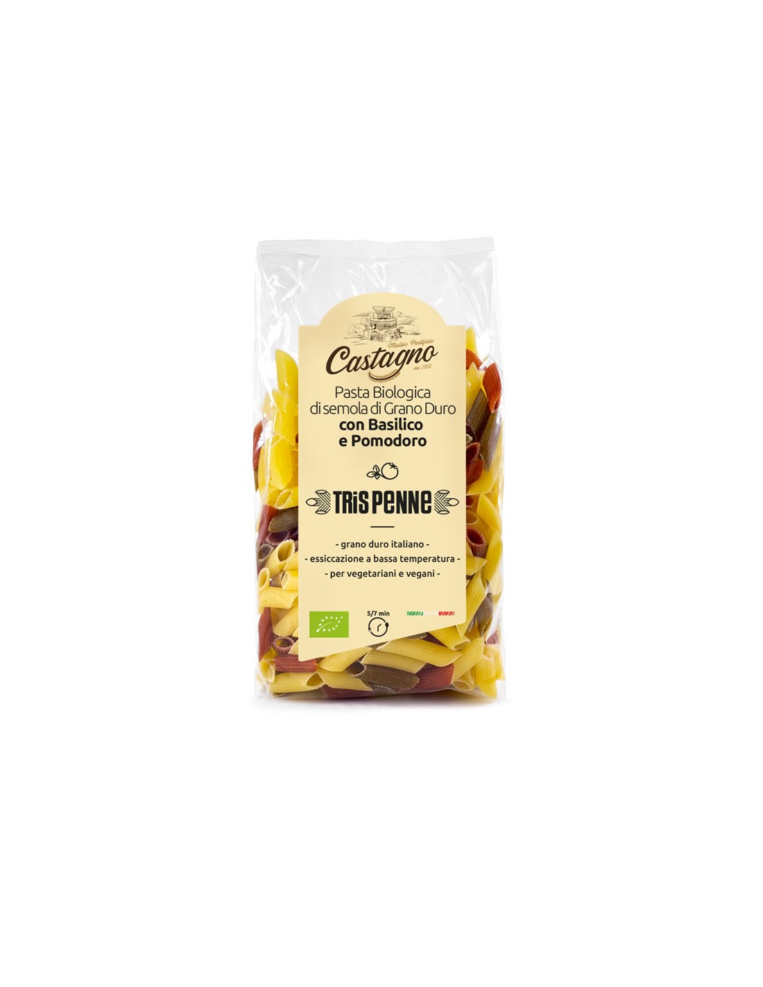 Características y beneficios exclusivos del Pack 12 Uds. MACARRONES DE TRIGO TOMATE Y ALBAHACA de Castagno