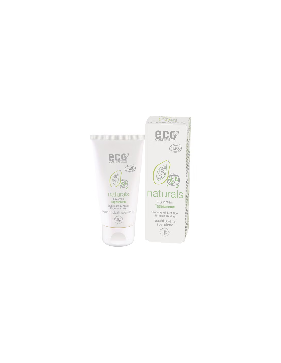 ECO COSMETICSCaracterísticas e Benefícios do Creme Facial Hidratante de Dia, romã/mamão, 50ml da Eco Cosmetics