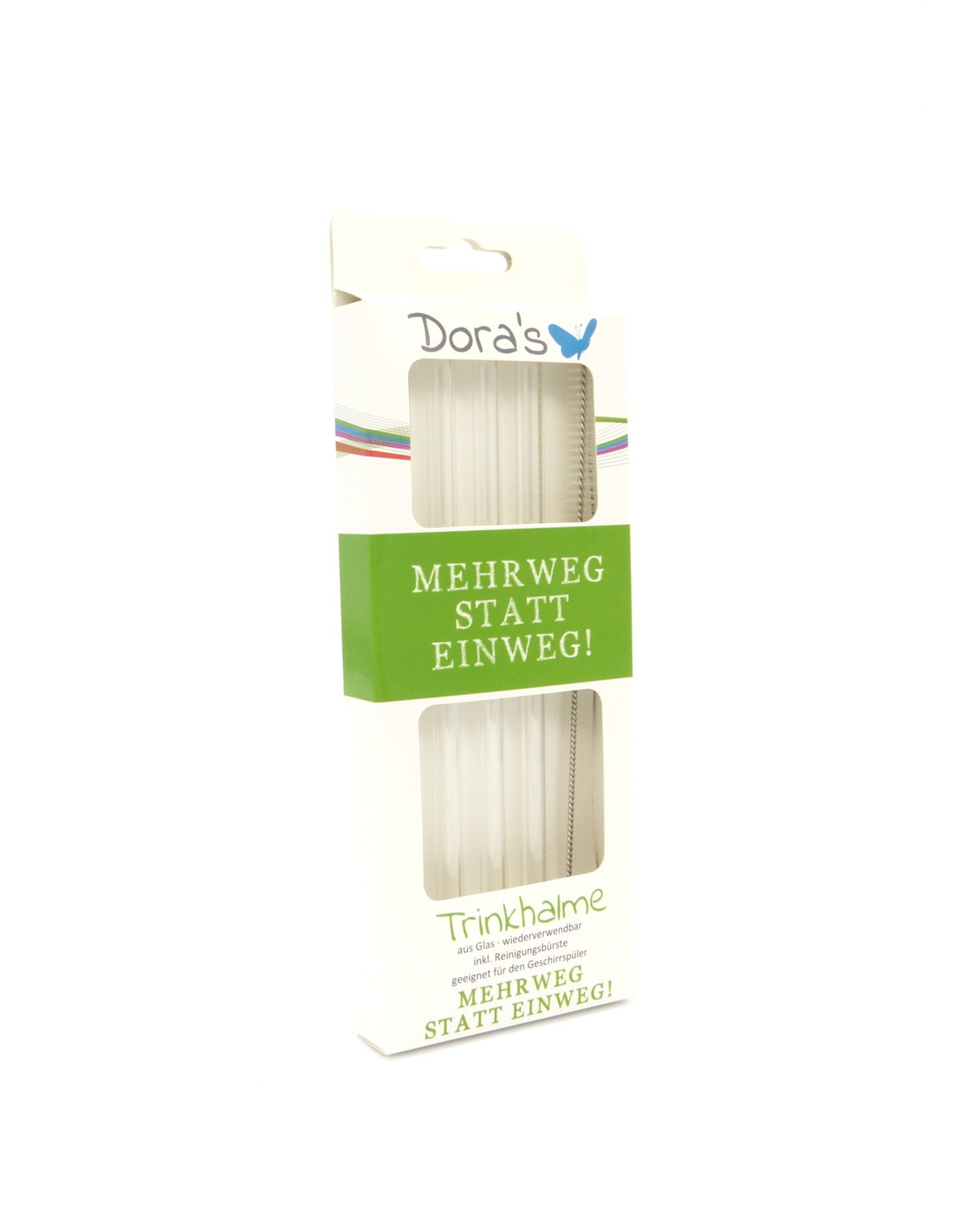Pajitas vidrio borosilicato rectas, set 6ud, con cepillo limpieza 20cm de Biodora