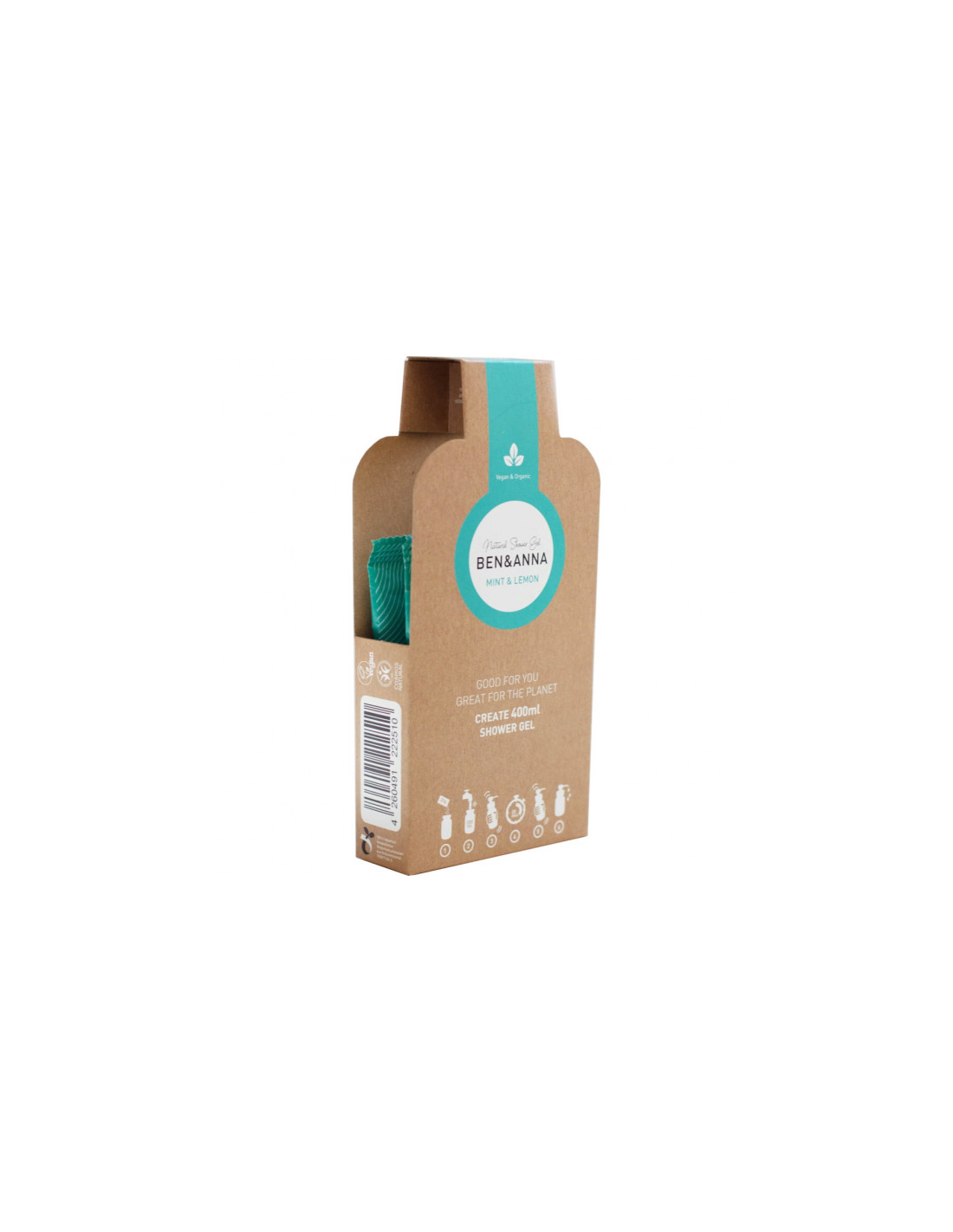 BEN&ANNACaracterísticas y beneficios del Gel de ducha Mint&Lemon, copos secos a diluir en agua, 2x20g=400ml de Ben&Anna