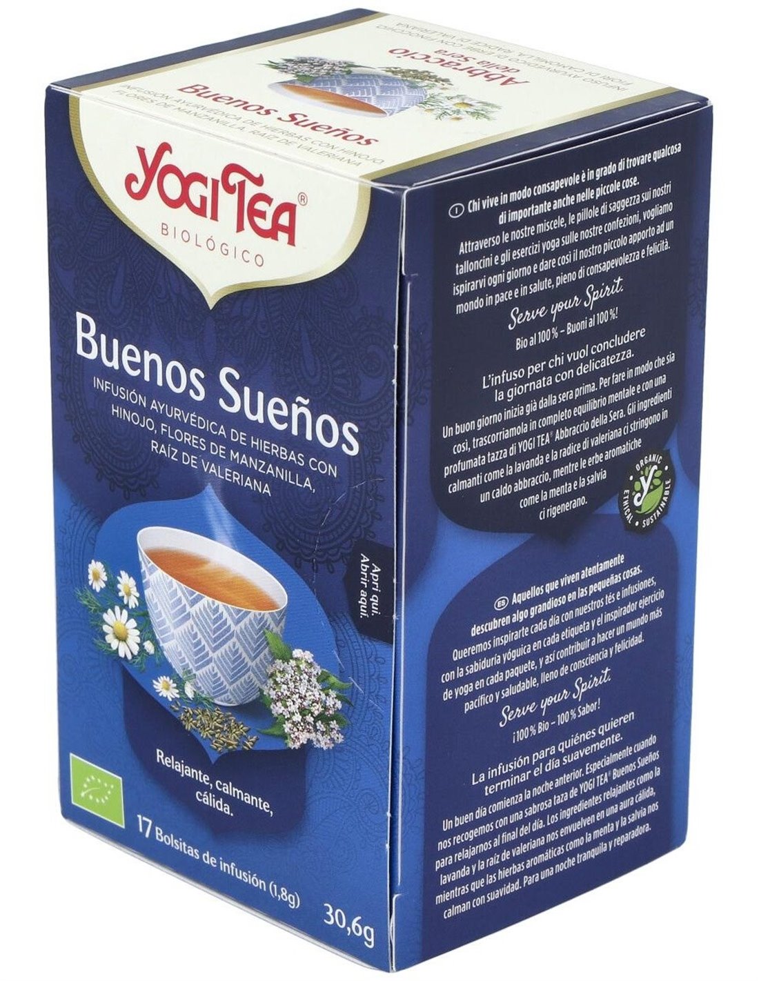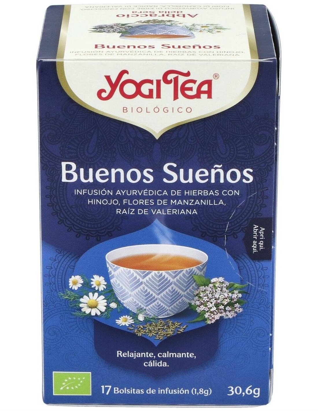 El Yogi Tea Buenos Sueños 17 x 1,8 g es una infusión diseñada para personas que buscan relajarse antes de dormir. Ofrece una mezcla de hierbas naturales que favorecen un ambiente tranquilo y propicio para el descanso.