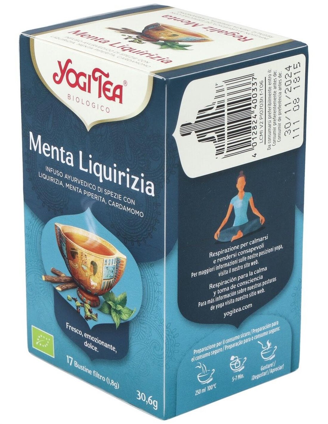El Yogi Tea Regaliz y Menta 17 x 1,8 g es una infusión diseñada para quienes buscan una mezcla natural y equilibrada. Ofrece un sabor suave y refrescante gracias a su combinación de regaliz y menta.