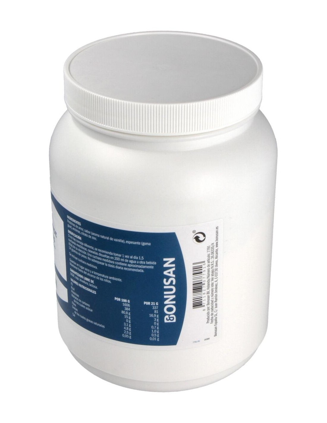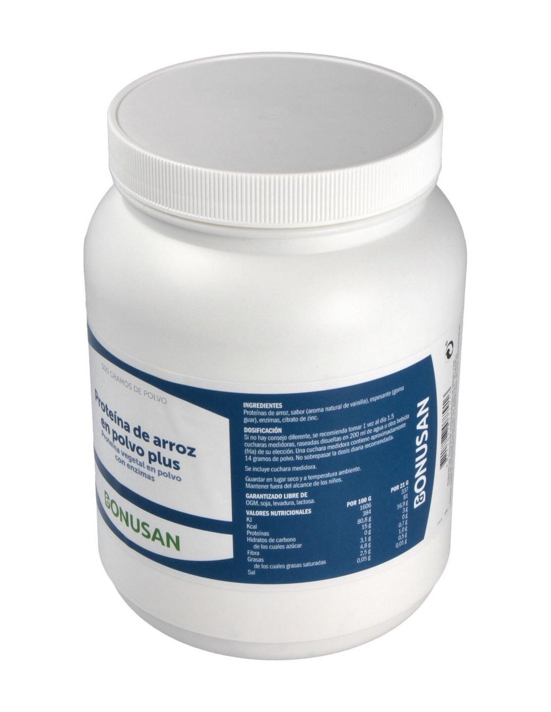La Proteína De Arroz Plus Polvo Sabor Vainilla 500Gr. de Bonusan ofrece una alternativa vegetal para quienes buscan complementar su ingesta proteica con un producto versátil y de fácil preparación.