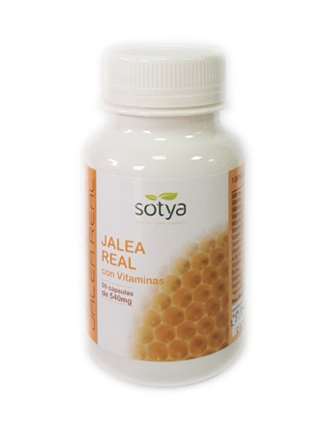 La Jalea Real 540Mg Cáps. 50U de Sotya es un suplemento natural para adultos que aporta nutrientes esenciales, contribuyendo al bienestar general mediante su fórmula concentrada en jalea real.