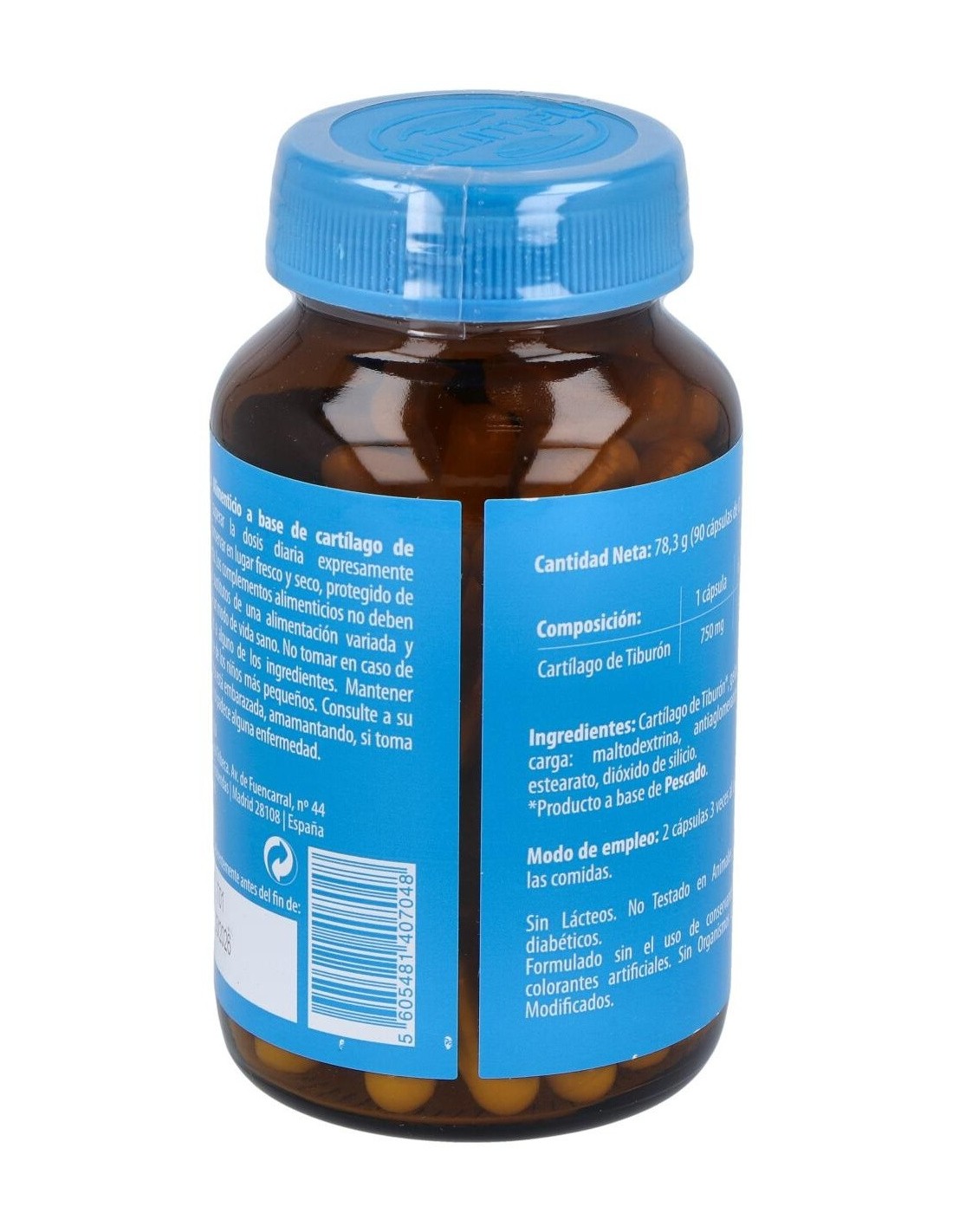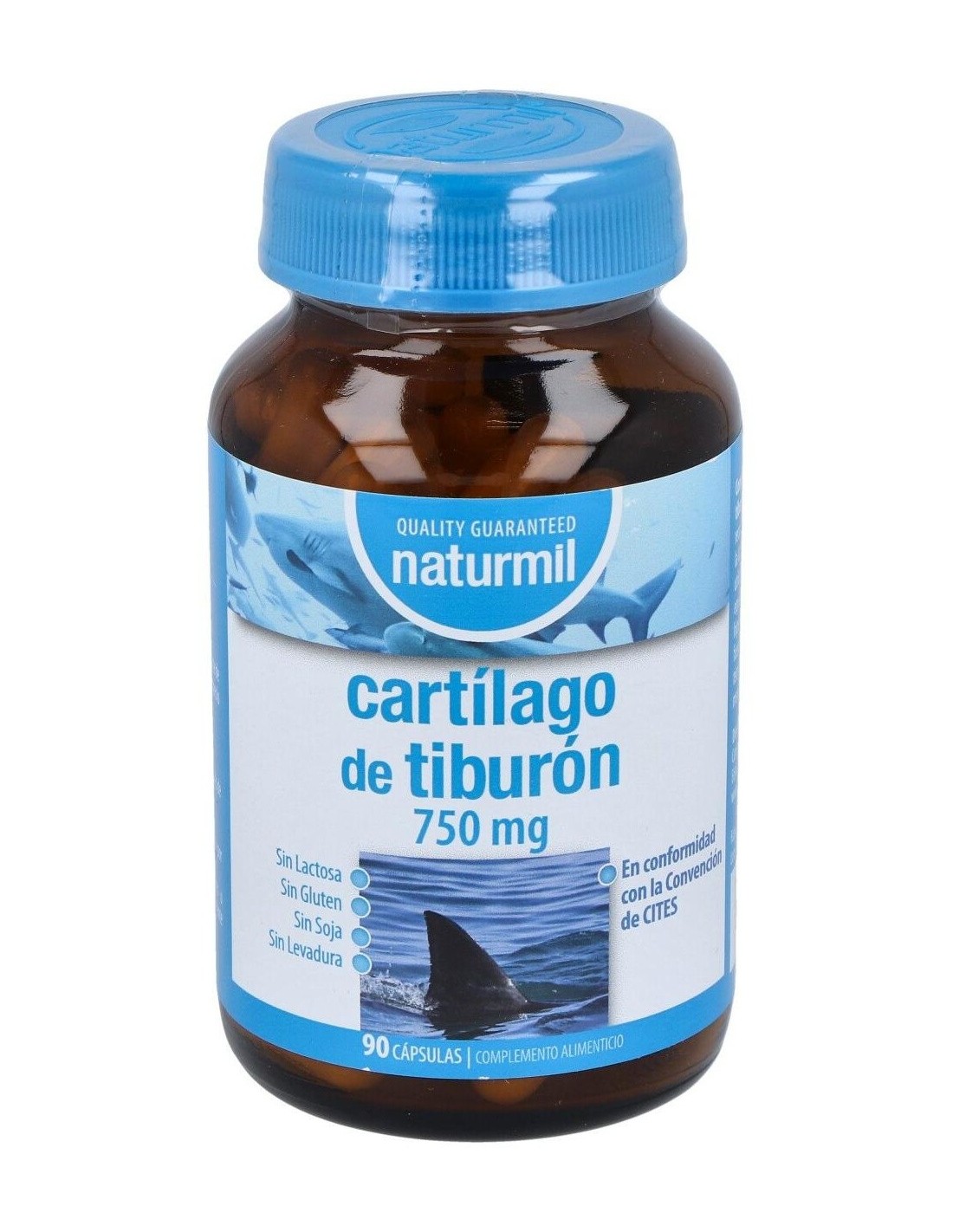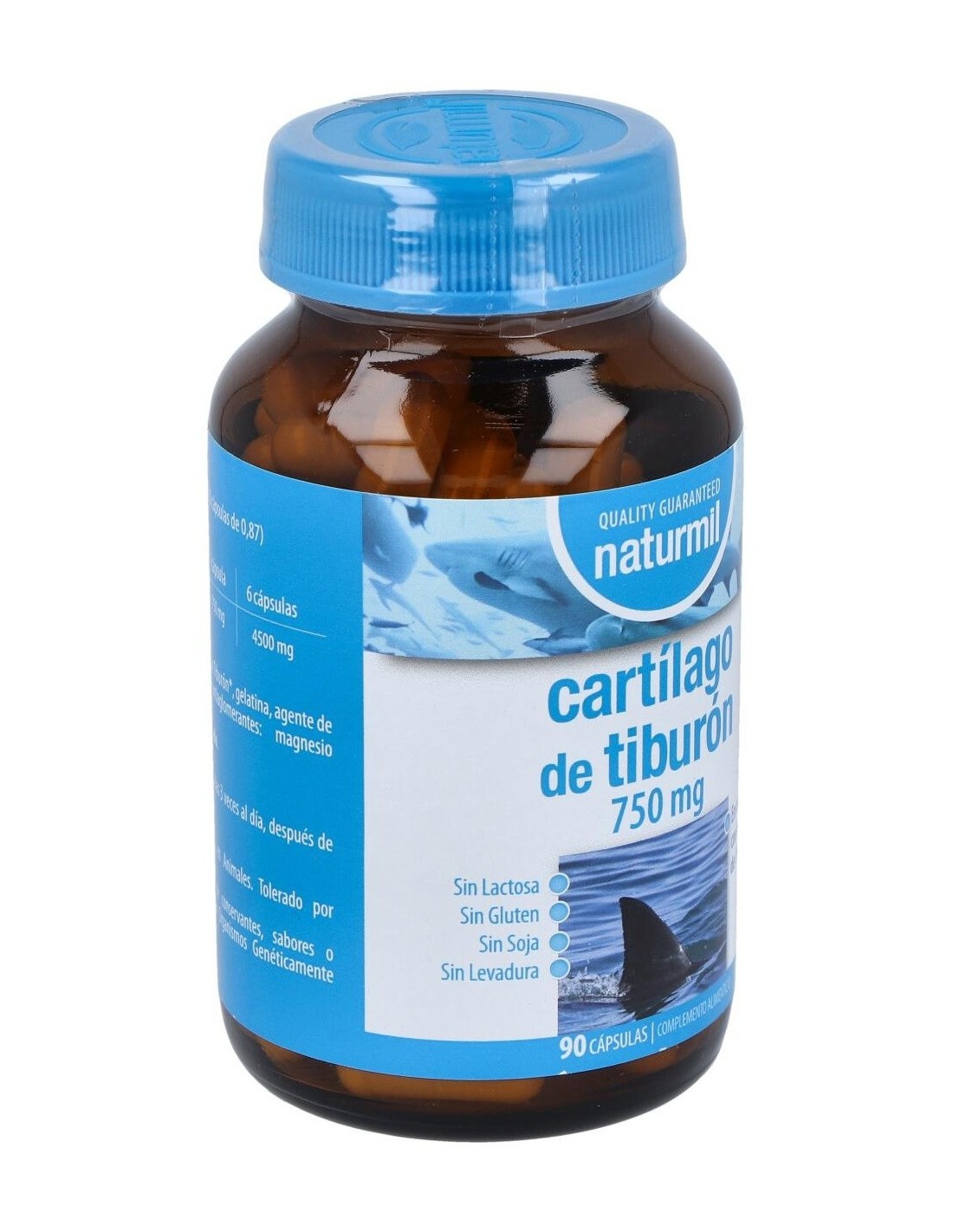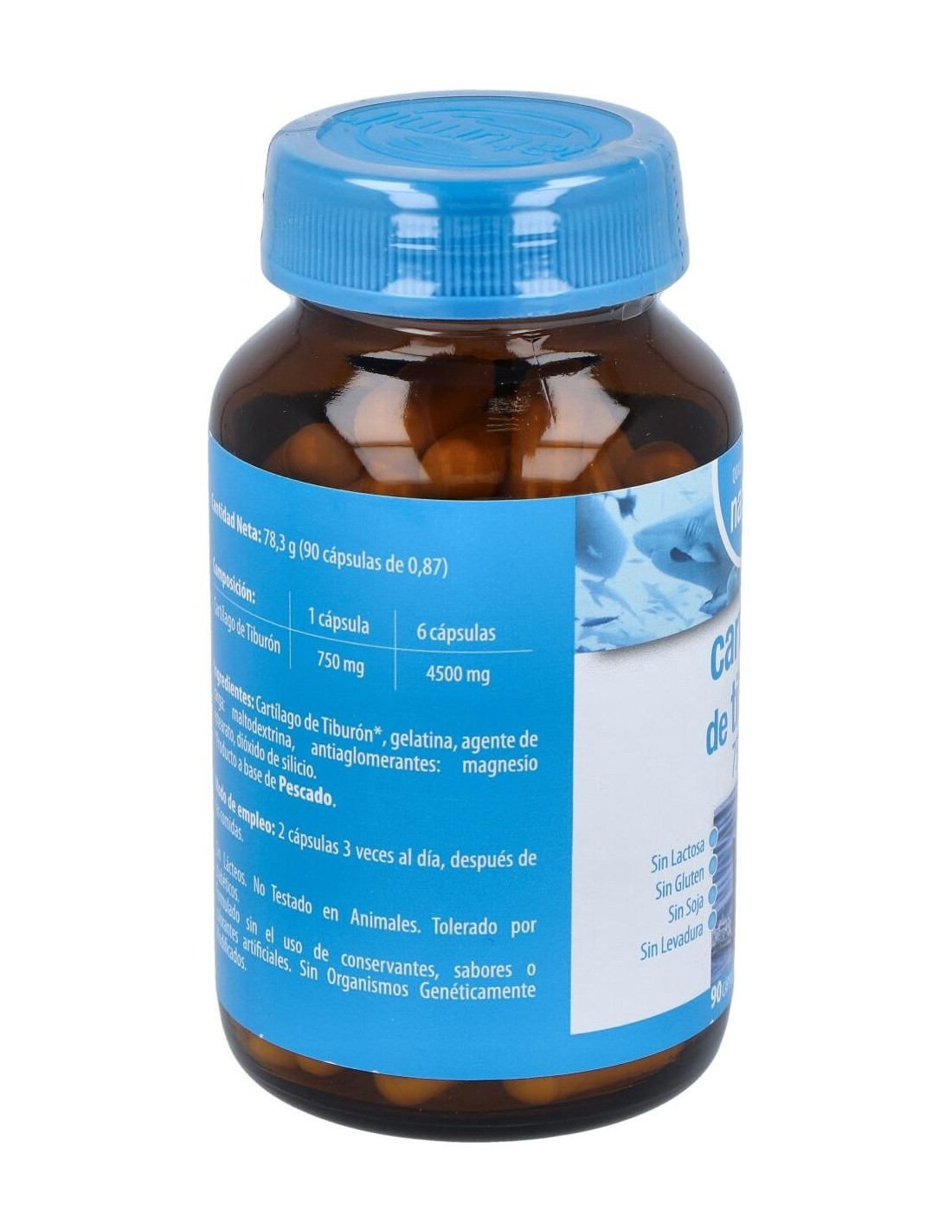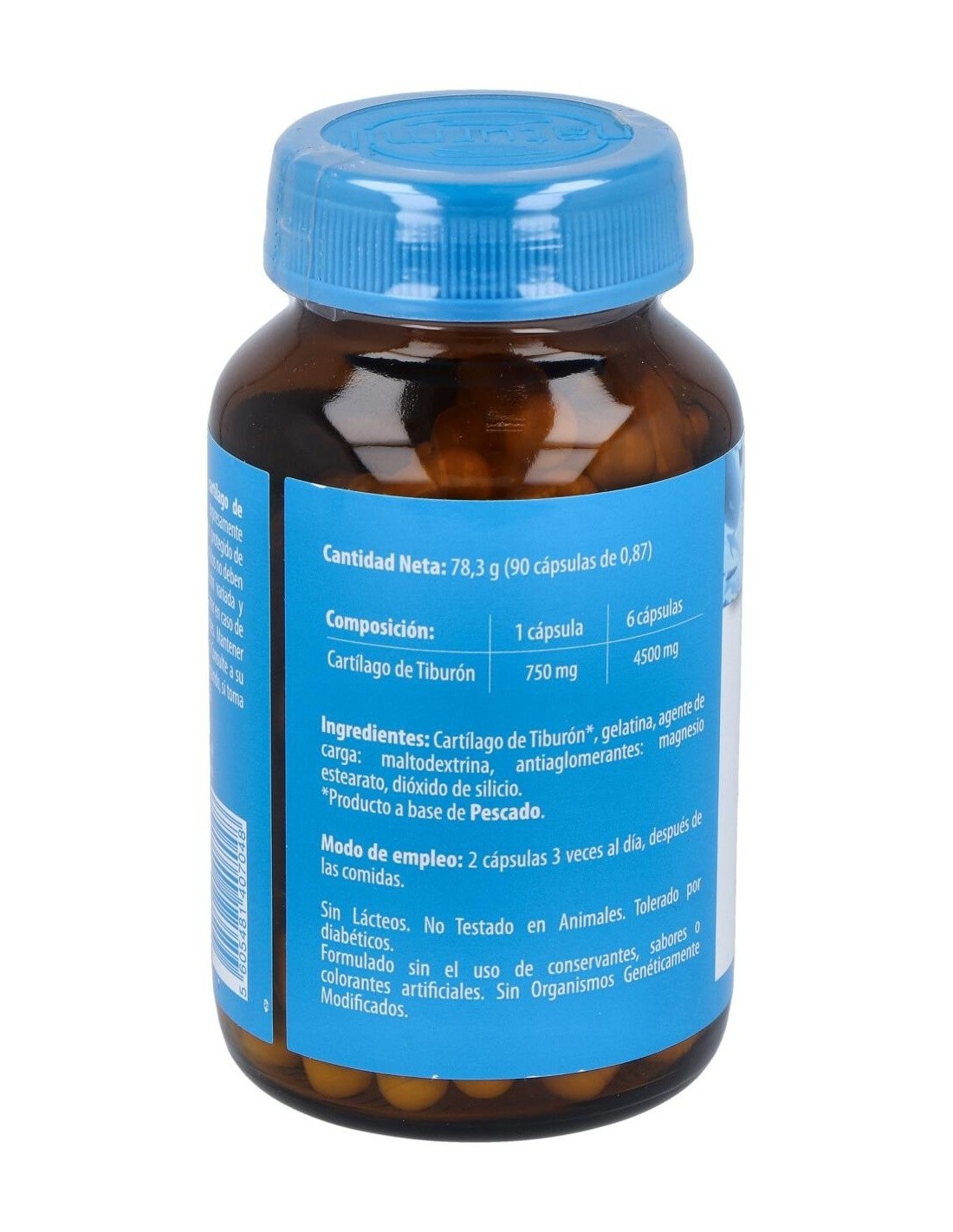 - Cada cápsula contiene 750 mg de cartílago de tiburón, facilitando una dosificación práctica y constante.