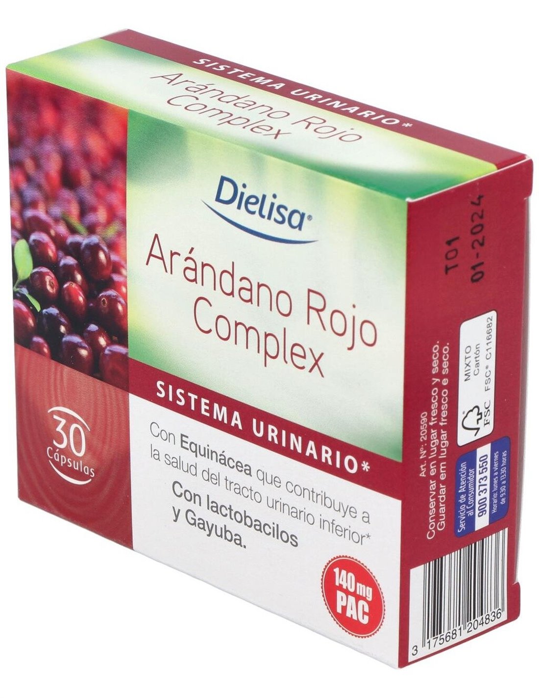 Complemento alimenticio a base de un extracto natural estandarizado de Arándano Rojo con elevada concentración de PAC-A (proantocianidinas-A) junto a otros ingredientes con efectos favorables en las molestias por cistitis.
