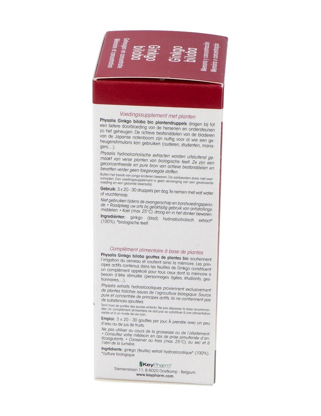 Complemento alimenticio a base de plantas que apoya al riego cerebral y mantiene así la memoria. Los principios activos presentes en las hojas de ginkgo constituyen un complemento apropiado para todos aquellos en los que la memoria necesita ser estimulada.