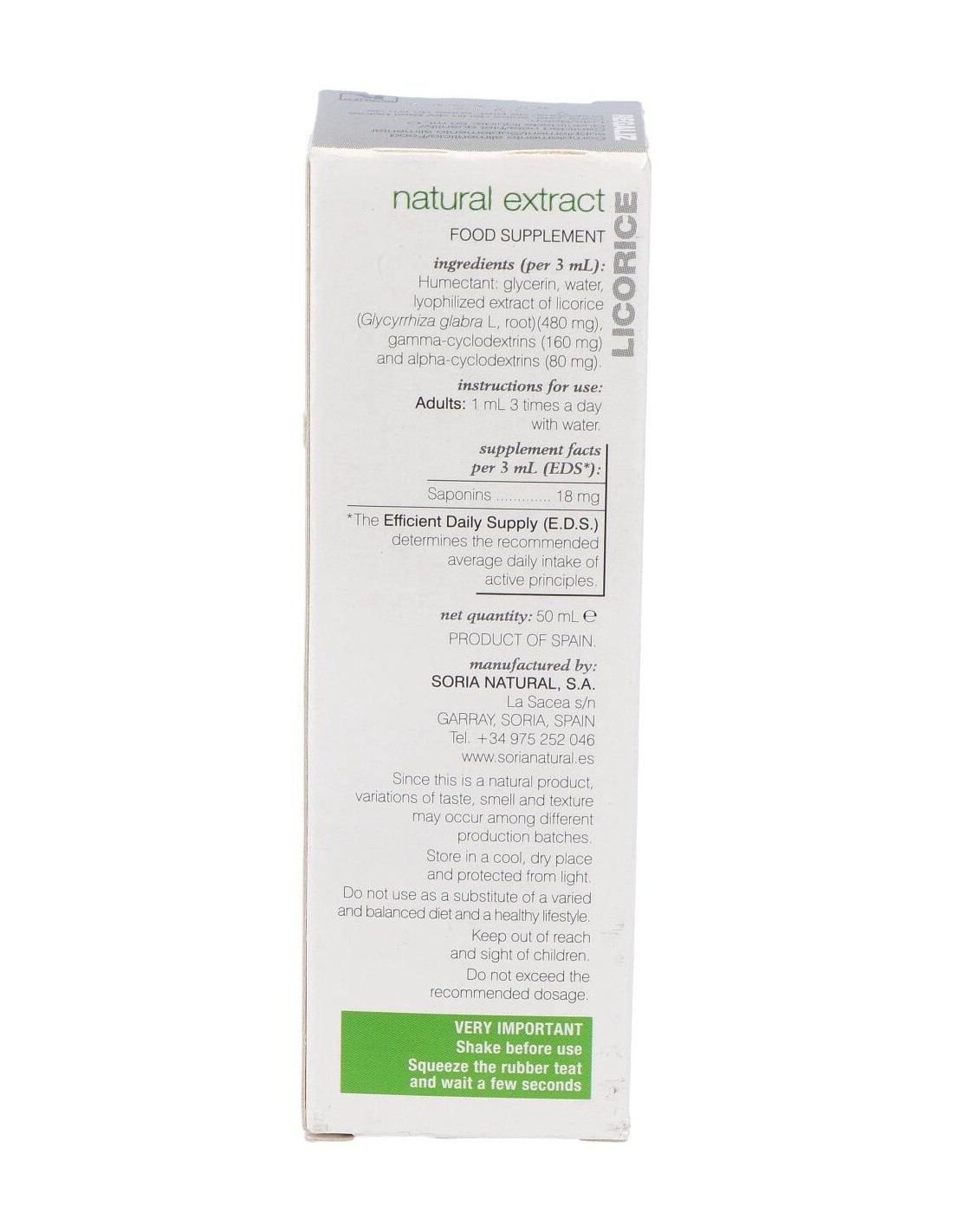 Complemento alimenticio de extracto de regaliz con efectos antivíricos y antibacterianos que pueden ser muy útiles para combatir infecciones comunes como los resfriados y la gripe. Este extracto de regaliz tiene como propiedades principales el ser expectorante y antitusivo. También es un antiespasmódico, antiulceroso, antiinflamatorio y cicatrizante. El regaliz está indicado para trastornos bronquiales, tos irritativa, úlcera gastroduodenal, gastritis, acidez, halitosis (aliento fétido), reumatismos. Se puede usar además como saborizante para infusiones. Los complementos alimenticios no deben utilizarse como sustitutos de una dieta variada y equilibrada. No superar la dosis diaria expresamente recomendada. Mantener fuera del alcance de los niños más pequeños.