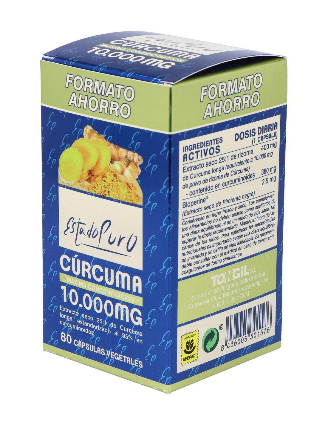 Tongil Estado Puro Cúrcuma 80 Cáps es un complemento alimenticio a base de extracto seco de cúrcuma que ayuda contra alteraciones digestivas e intestinales.