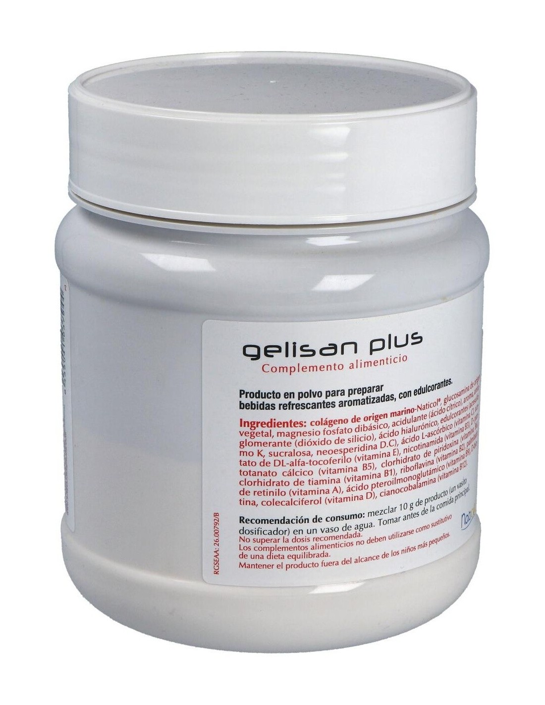 Colágeno hidrolizado de origen marino, Glucosamina de origen vegetal, Magnesio fosfato dibásico, Acidulante (ácido cítrico), Aroma, Antiaglomerante (dióxido de silicio), Edulcorantes (acesulfamo K, sucralosa, neoesperidina D. C), Vitamina C, Vitamina E, Vitamina B3, Vitamina B5, Vitamina B, Vitamina B1, Vitamina B2, Vitamina A, Vitamina B9, Biotina, Vitamina D, Vitamina B12.