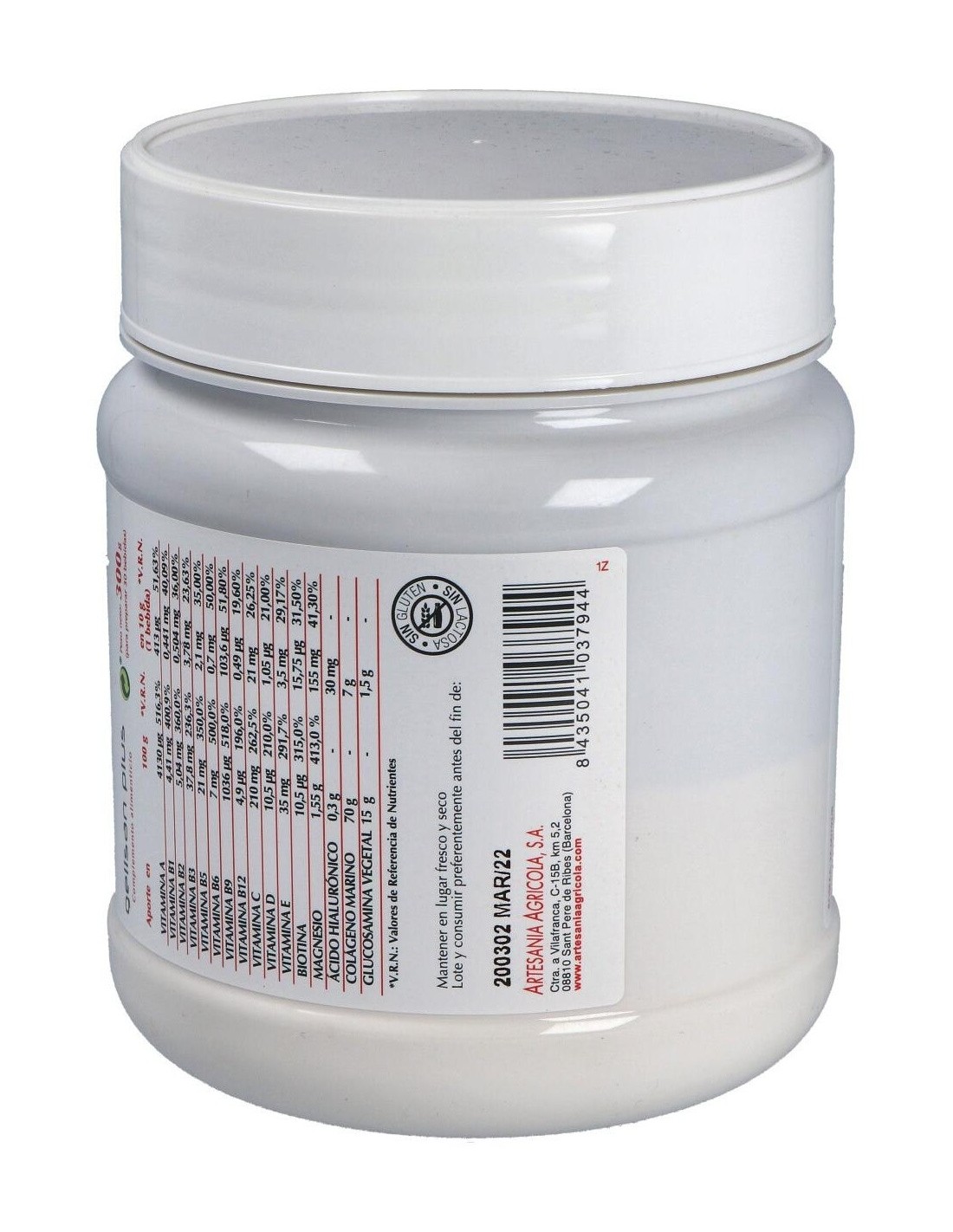 Solución en polvo con ácido hialurónico que contribuye a mantener la correcta lubricación del cartílago que sujeta huesos y articulaciones. Especialmente indicado para personas en edad avanzada y para personas que practican ejercicio de elevada intensidad. Además regula el flujo sanguíneo reduciendo el riesgo de sufrir varices y arañas vasculares.