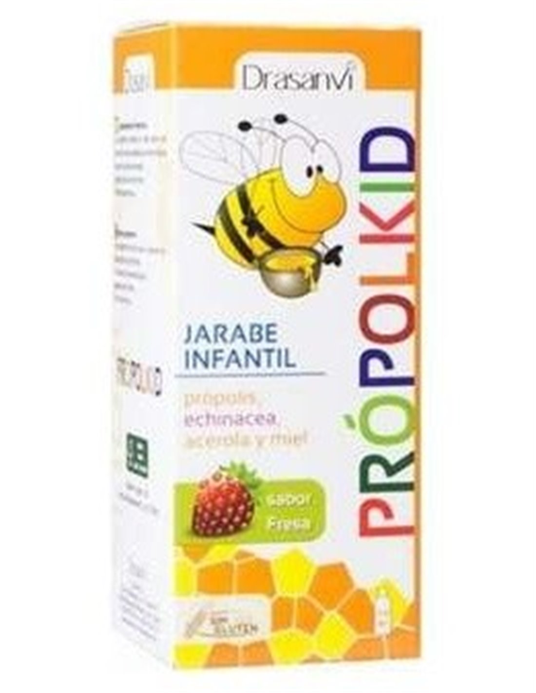 Complemento alimenticio con sabor a fresa que contribuye al funcionamiento normal del sistema inmunitario. Indicado para niños mayores de tres años. Está compuesto por própolis, la equinácea, la acerola, el sol de oro y miel, incluye el extracto de semilla de pomelo y malva. Debido a su importancia en la contribución al funcionamiento normal del sistema inmunitario hemos añadido Vitamina C natural, proveniente de la acerola. La acerola es un fruto rojo, y es conocida como la fruta con mayor cantidad de vitamina C.