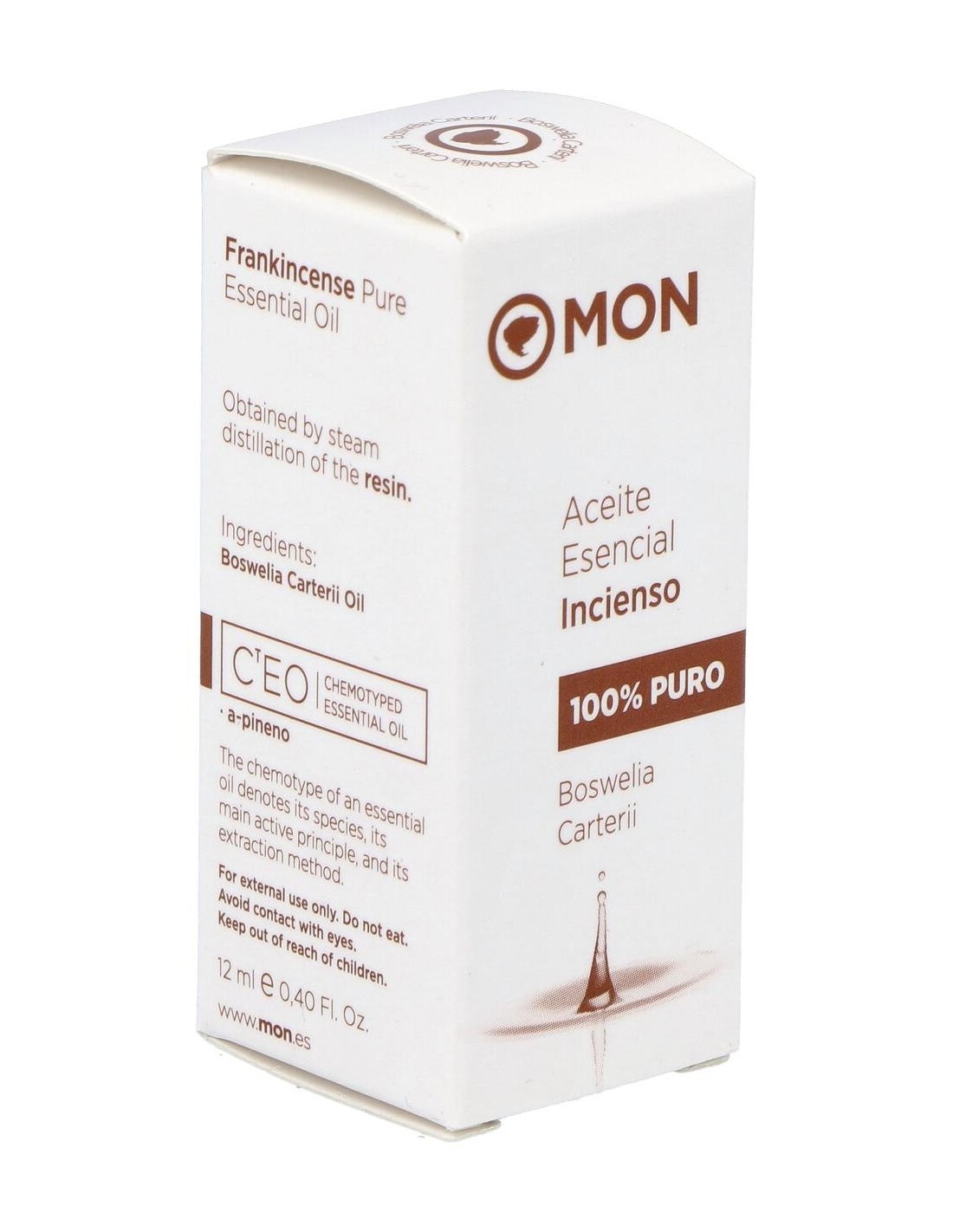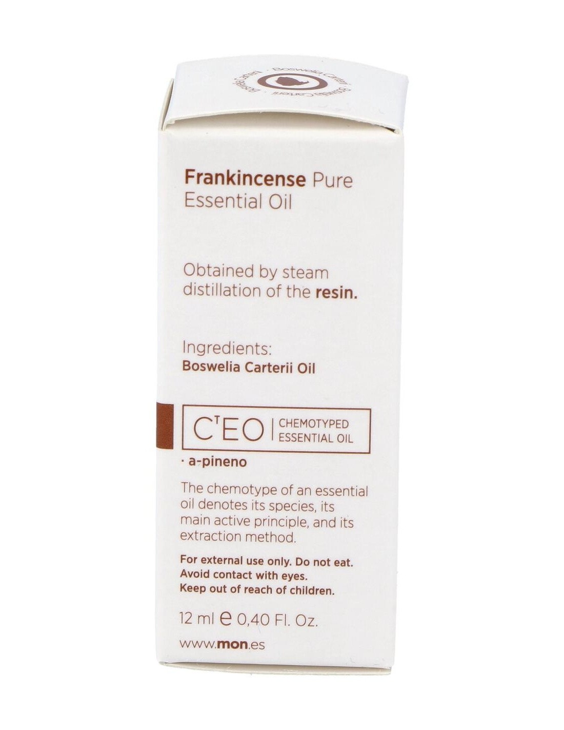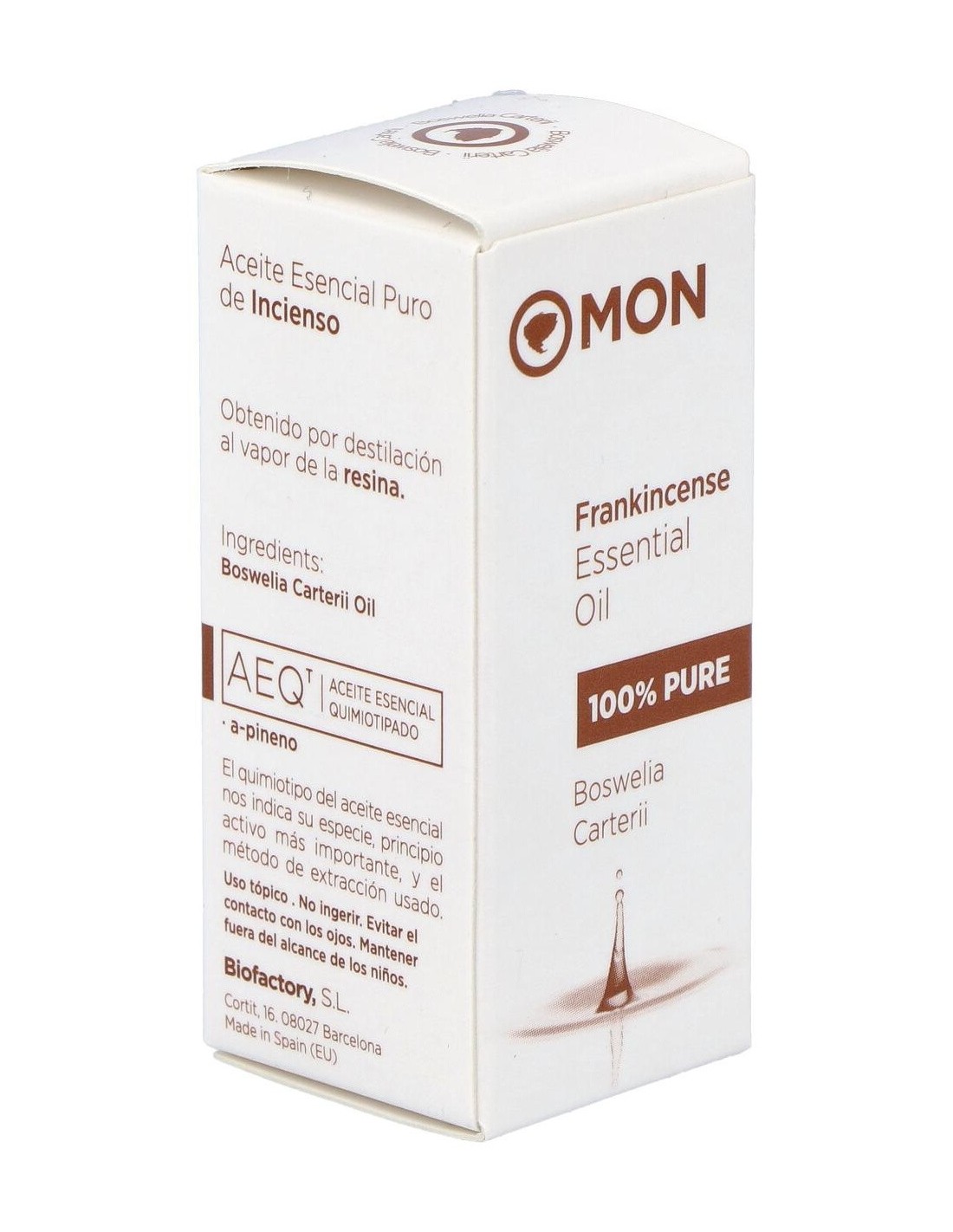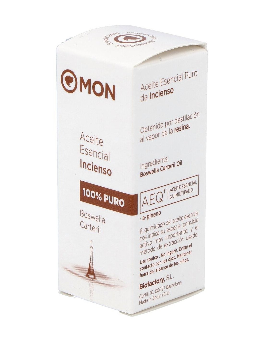 Aceite esencial 100% puro de Boswellia carterii, obtenido por la destilación al vapor de agua de la resina sin presión. Con A-pineno, Limoneno como principio activo.