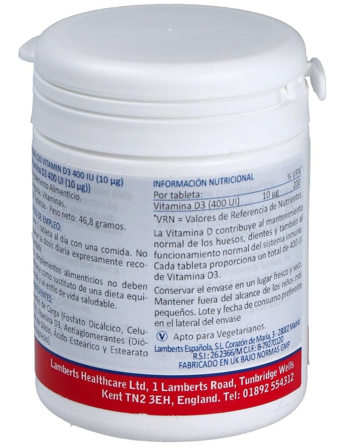 Vitamina D (como vitamina D3)............400 UI (10µg)