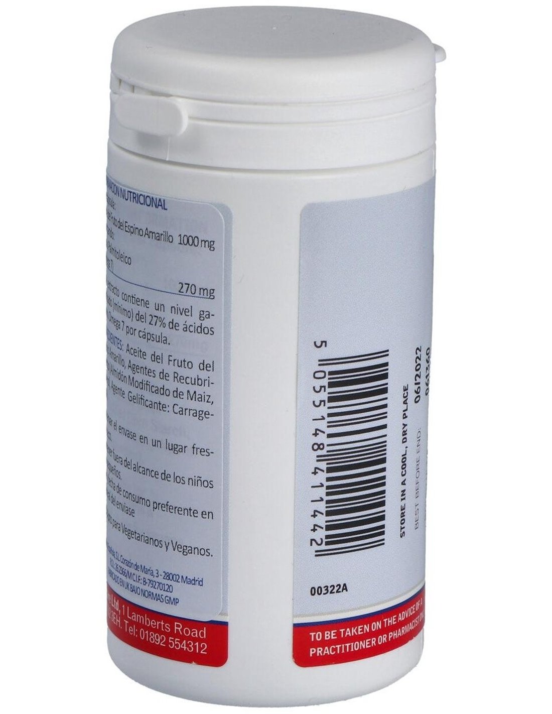 Las bayas de la planta de espino amarillo contienen una de las fuentes más ricas de ácidos grasos Omega 7. Apto para vegetarianos.