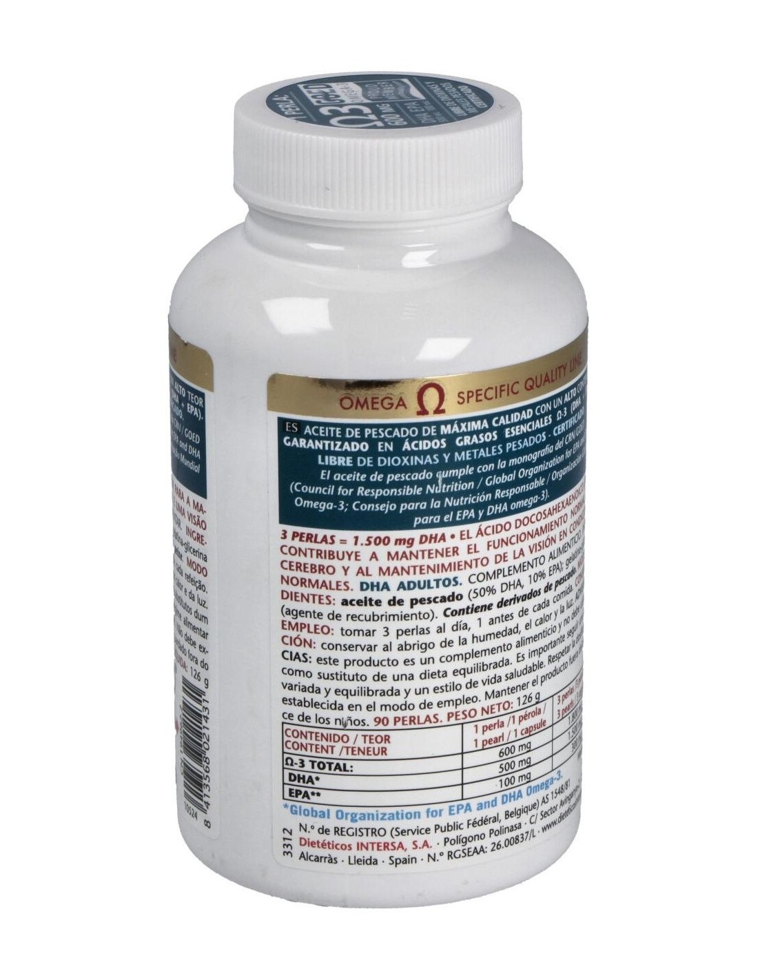 ACEITE DE PESCADO SALVAJE PELÁGICO (50% DHA, 10% EPA). EXCIPIENTES: PERLAS DE GELATINA GLICERINA (ENVOLTURA DE LA PERLA).CONTIENE DERIVADOS DE PESCADO.