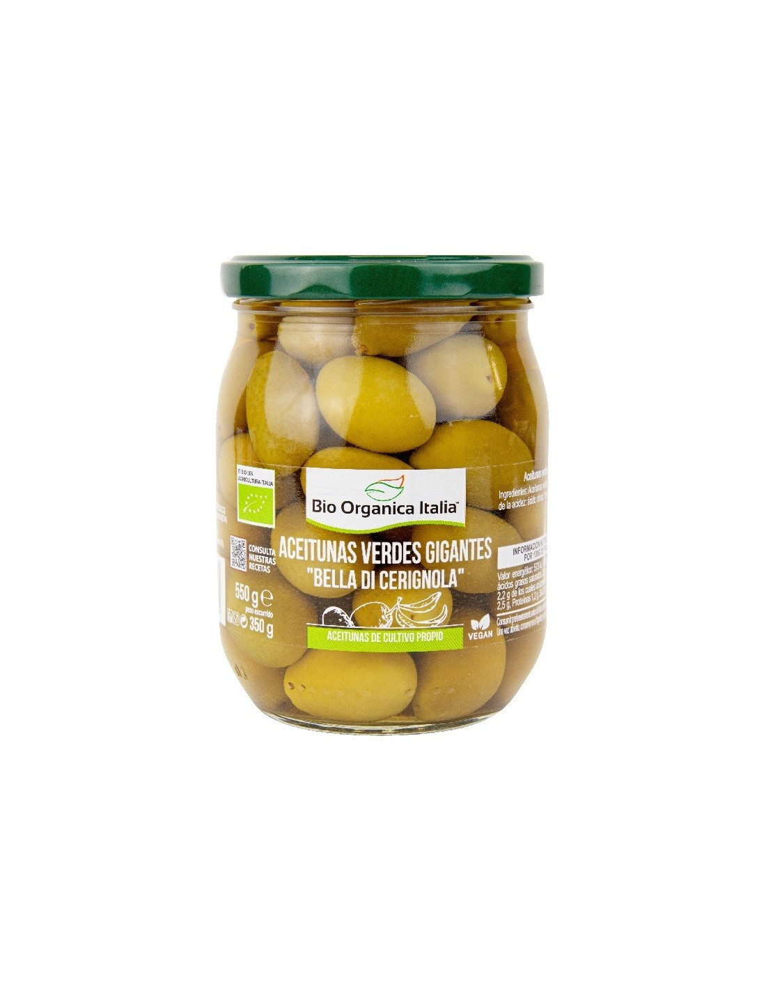 Aceitunas verdes, agua, sal, ácido cítrico.