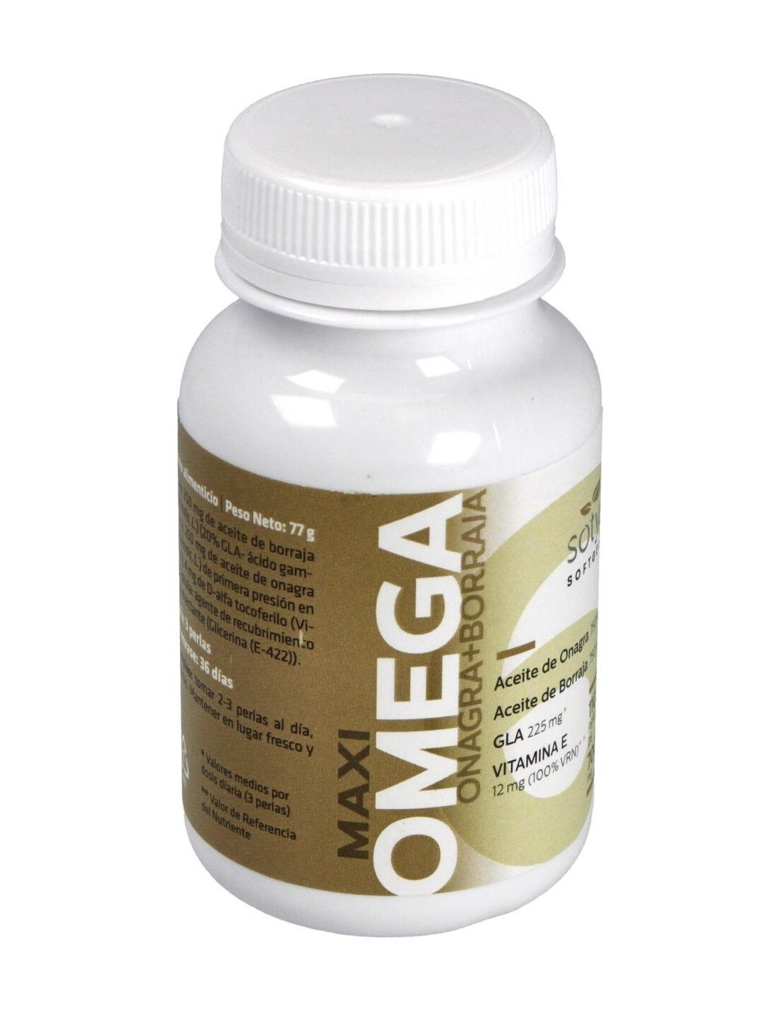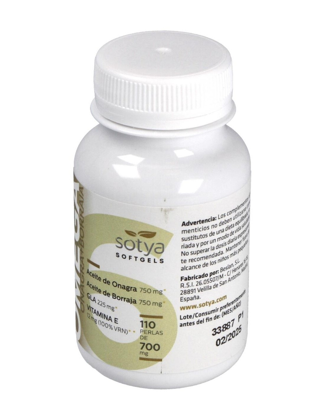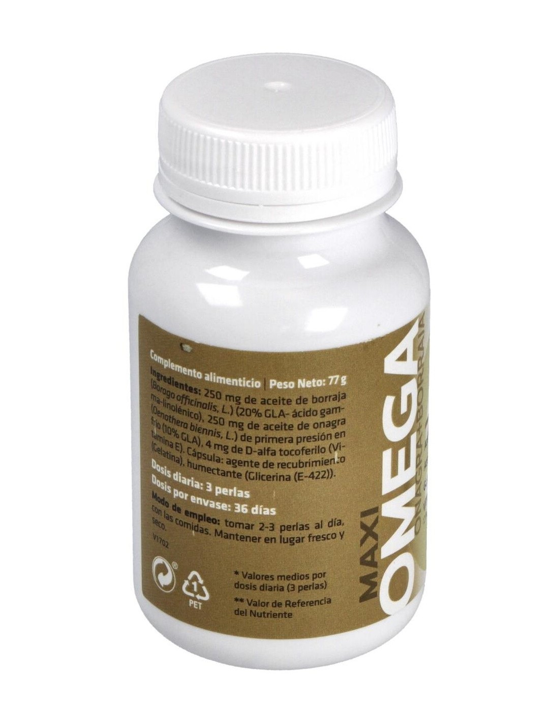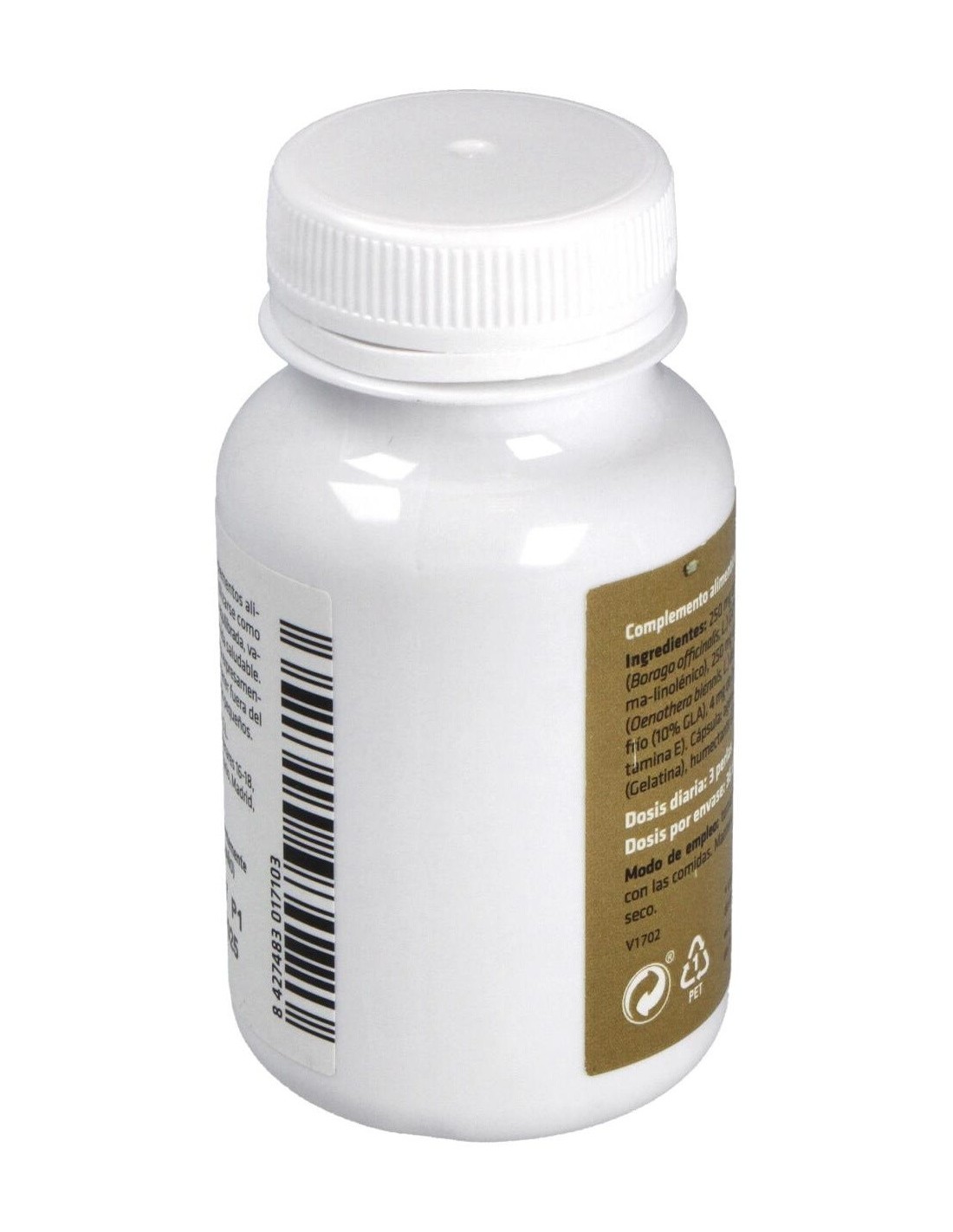 250 mg de aceite onagra (Oenothera biennis) y 250 mg de aceite de borraja (Borago officinalis), ambos de primera presión en frío, 2.5 mg de vitamina E natural, d-alfa tocoferol acetato. Cobertura de gelatina y glicerina. Peso total aproximado 69 0mg (incluida cobertura)