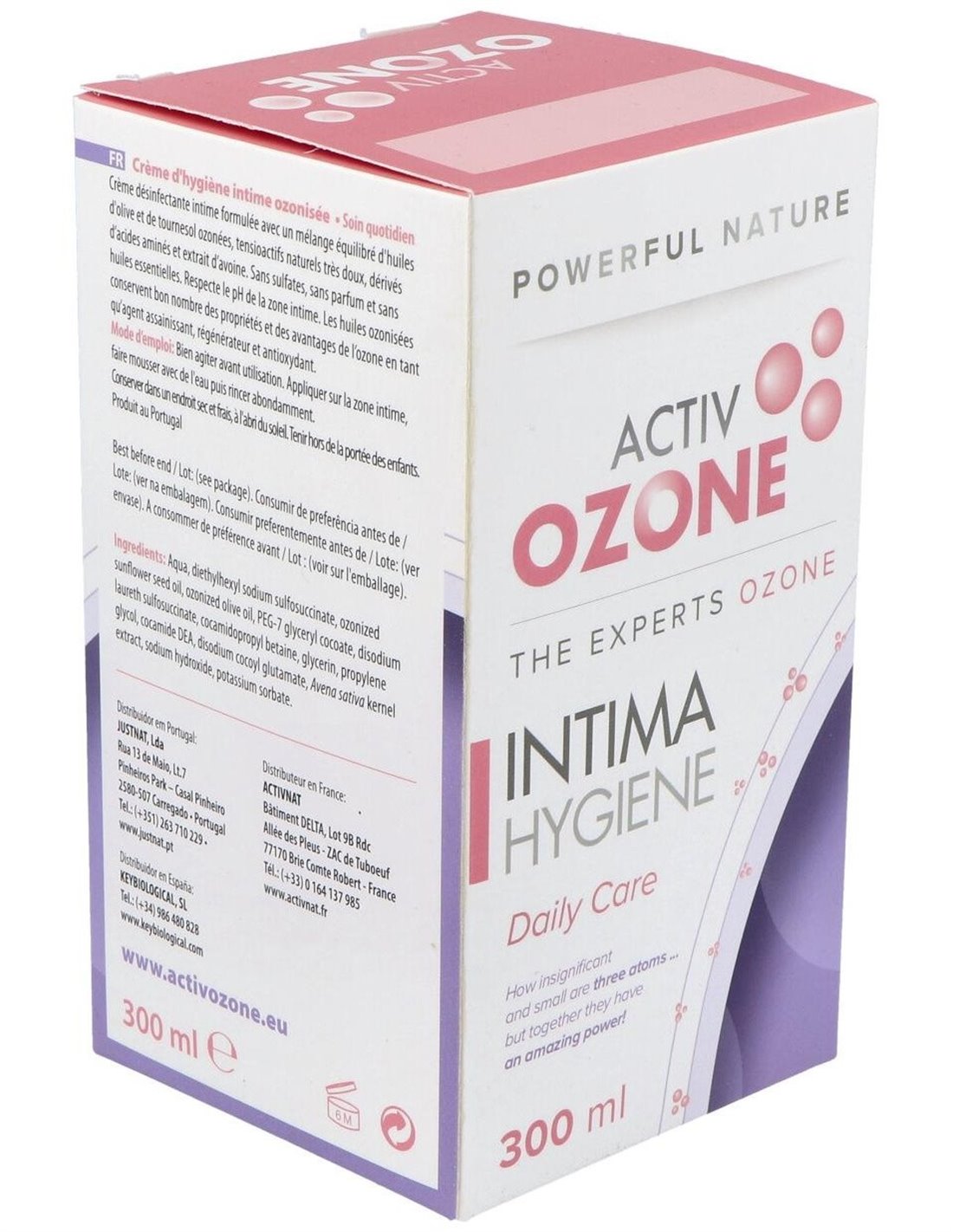 Activ Ozone Higiene Intima Diaria 300ml gel íntimo diario que protege las mucosas más sensibles de la zona íntima, está formulada con una mezcla de aceites ozonizados de Oliva y Girasol que contienen propiedades del ozono. Proporciona higiene y favore el reequilibrio de la flora de la piel.