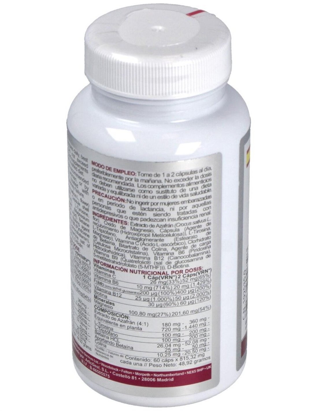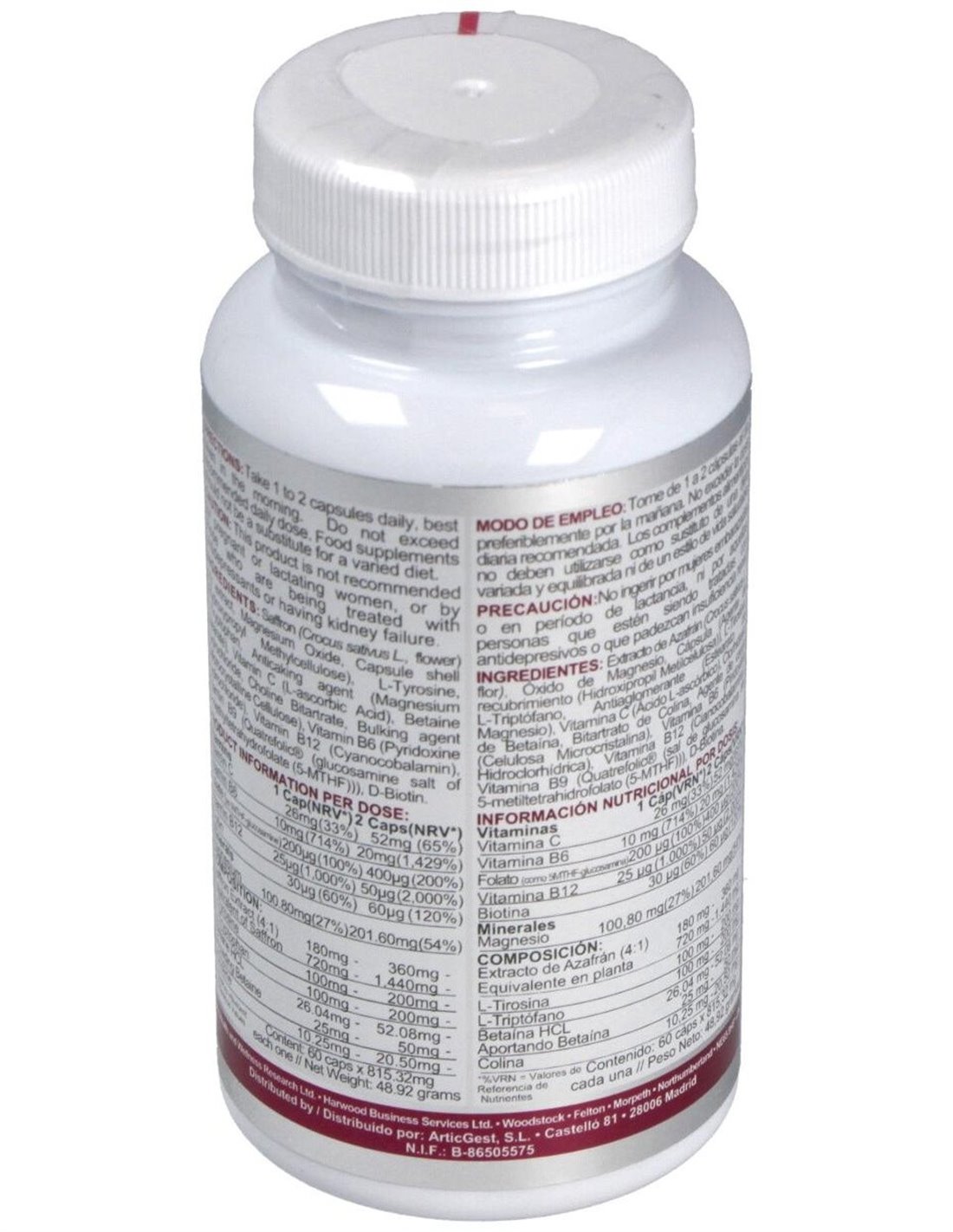 Fórmula a base de extracto de azafrán que contribuye a la normal función psicológica en sinergia con vitaminas del grupo B, que ayudan a un normal mantenimiento del sistema nervioso.