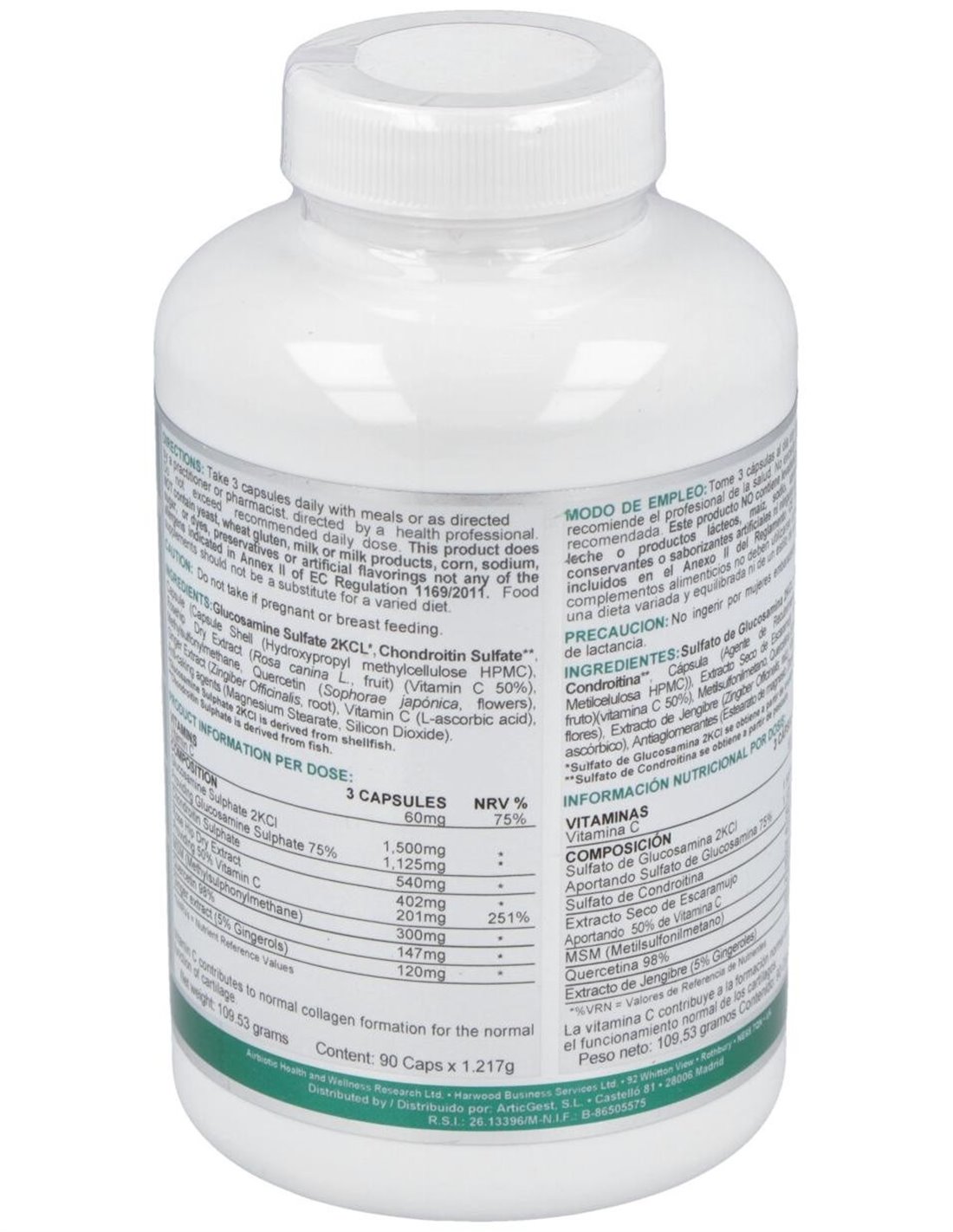 Sulfato de Glucosamina.....................1500 mg
