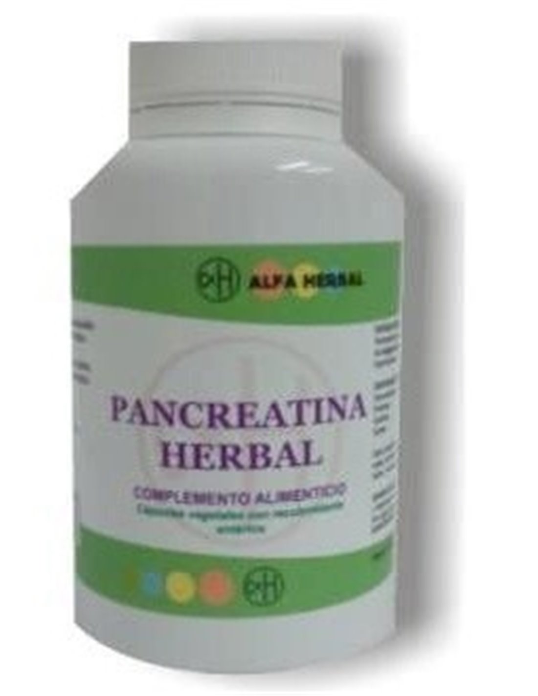 ALFA HERBALComplemento alimenticio a base de concentrado y combinado de enzimas pancreáticas de origen porcino. Contiene una actividad estandarizada de lipasa, proteasa y amilasa de 325 mg por capsula equivalentes a 1.300 mg de pancreatina. Ayuda a mejorar las digestiones y a la absorción de los alimentos. Alivia la distensión abdominal,dispepsia o flatulencias.