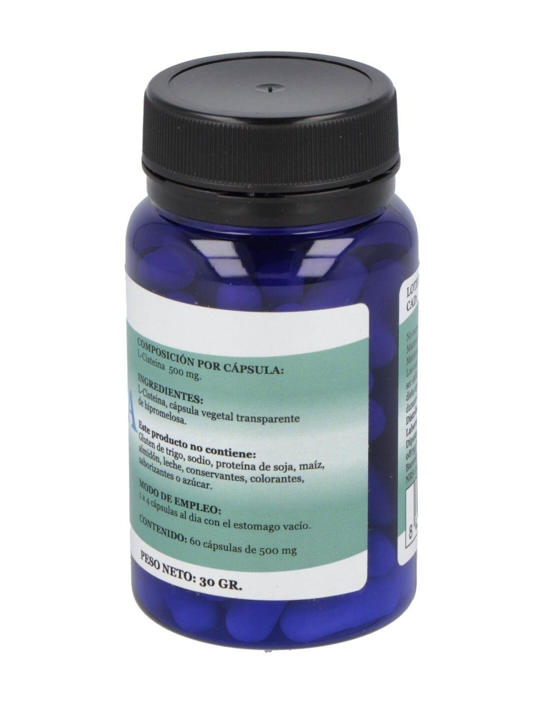 Complemento alimenticio en forma de cápsulas, elaborado a base de la forma aceitada de L-cisteína, un aminoácido no esencial que promueve la producción de colágeno y favorece, dentro de una dieta saludable, la pérdida de grasa.