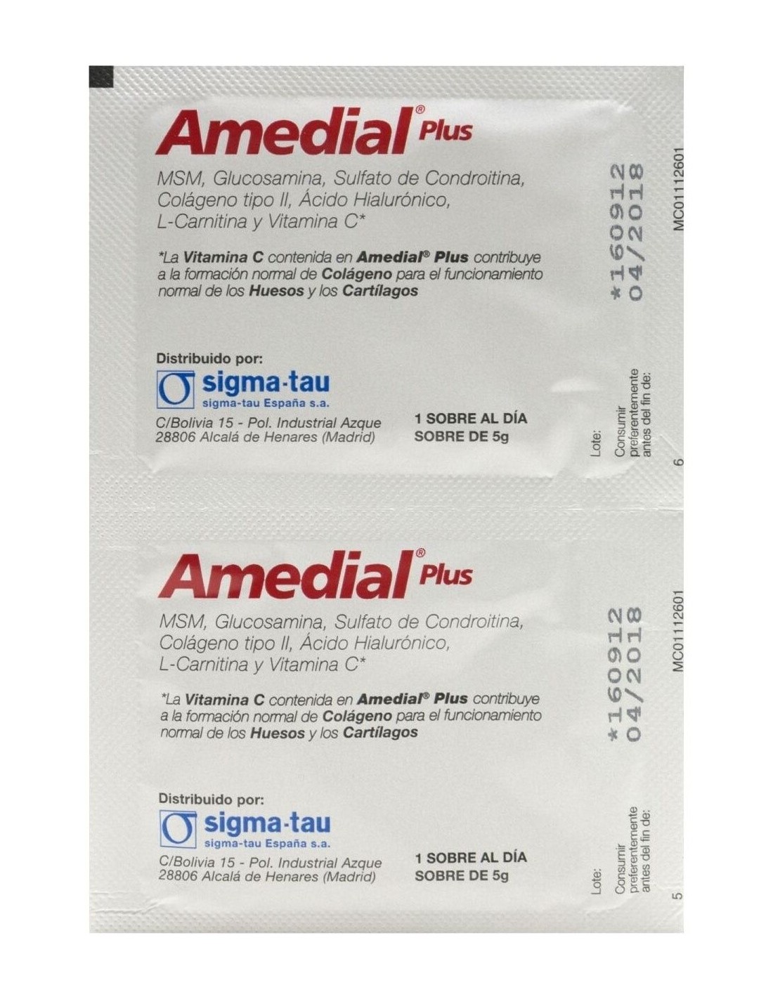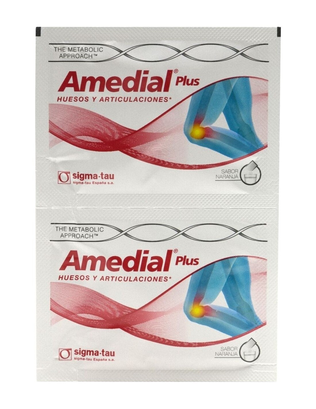 La vitamina C contenida en Amedial Plus contribuye a la formación normal de colágeno para el funcionamiento normal de los huesos y cartílagos. Sabor naranja.