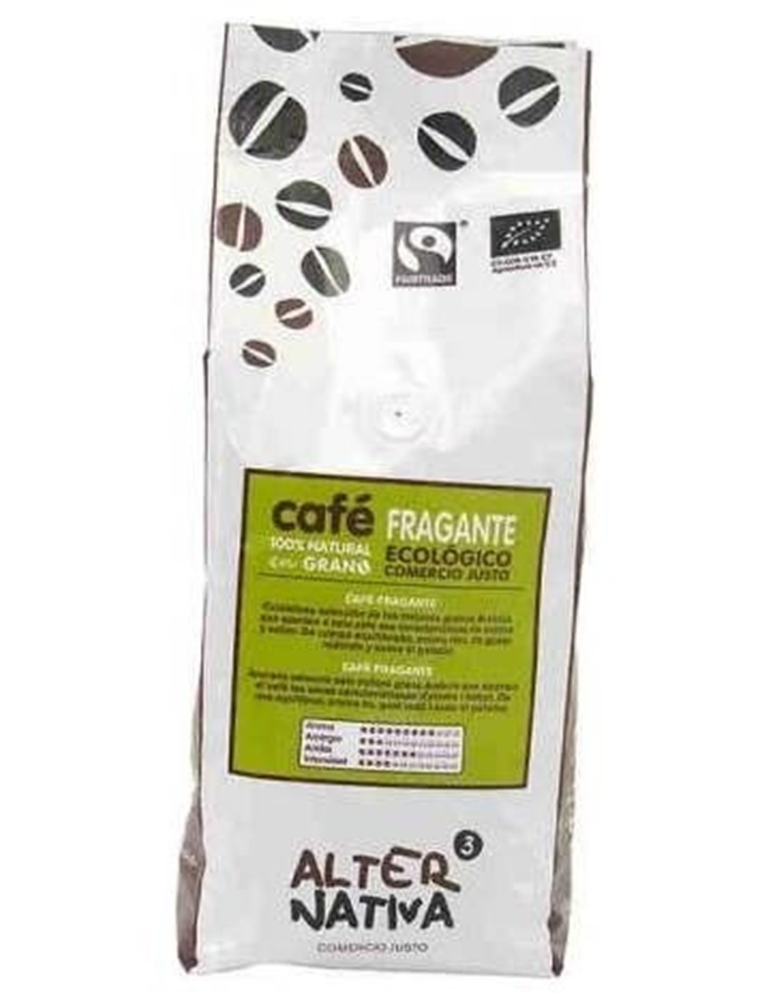 Café ecológico de Comercio Justo de tueste natural.