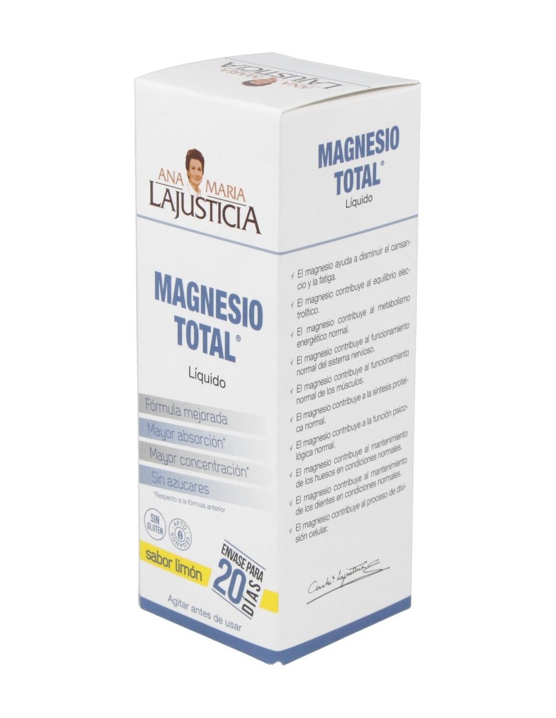 El Magnesio Total de LaJusticia es una solución perfecta para aportar a tu organismo un suplemento adicional de magnesio. Este producto es ideal para aquellas personas que, por distintos motivos, se encuentran en una situación de infraconsumo de magnesio: embarazo, vejez, lactancia, etc. Además, el agradable y aromático sabor a limón te hará mucho más placentera la ingesta de este producto.