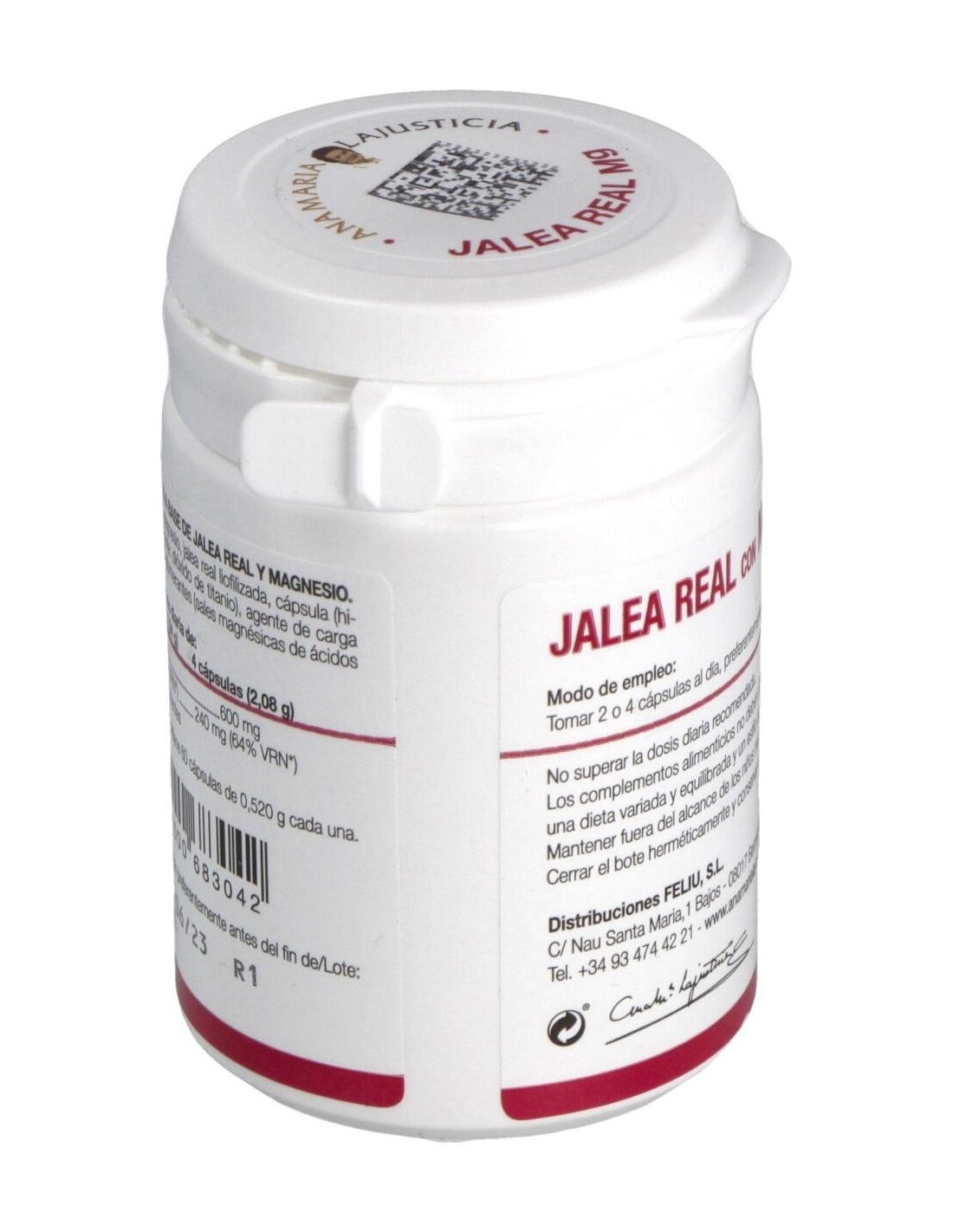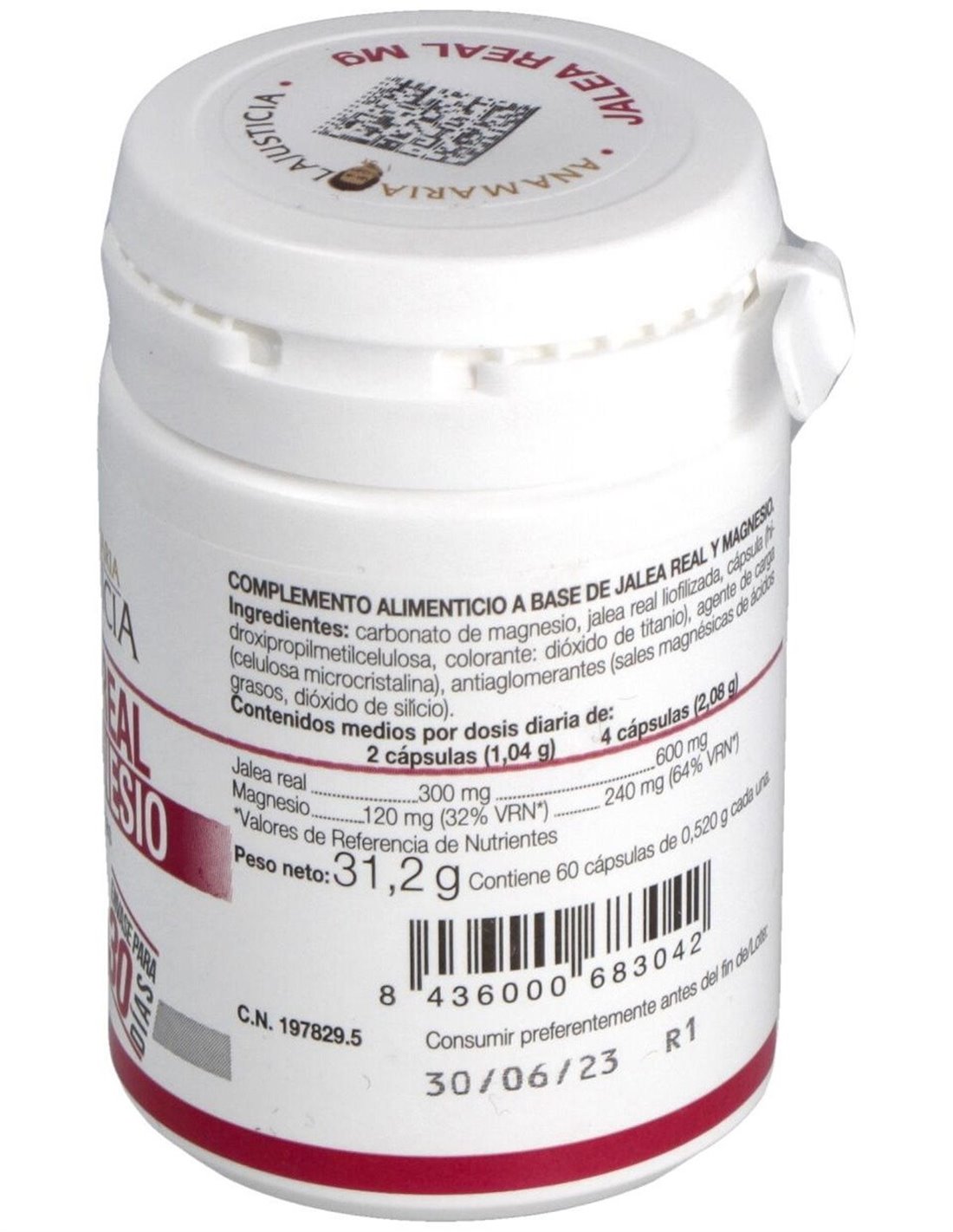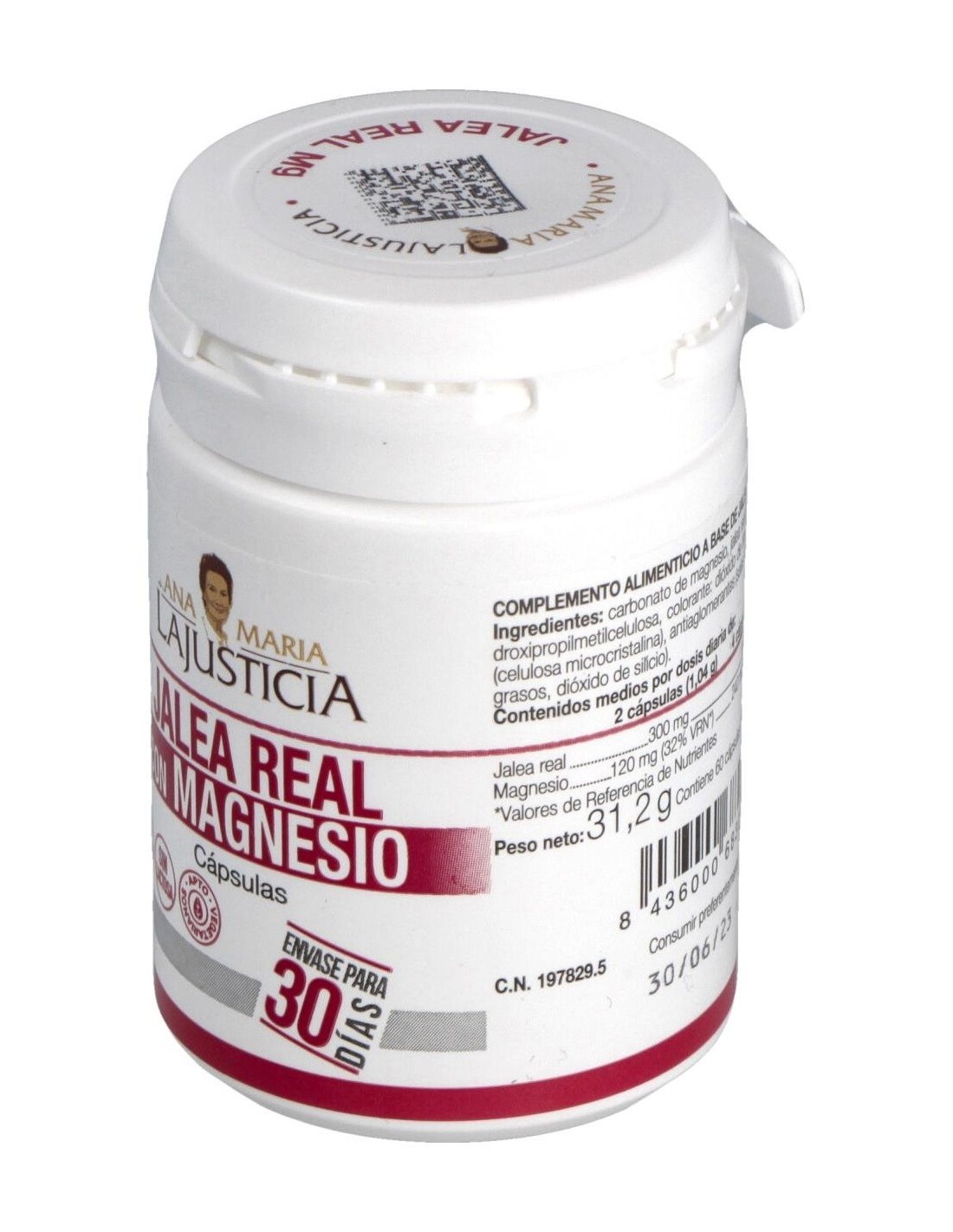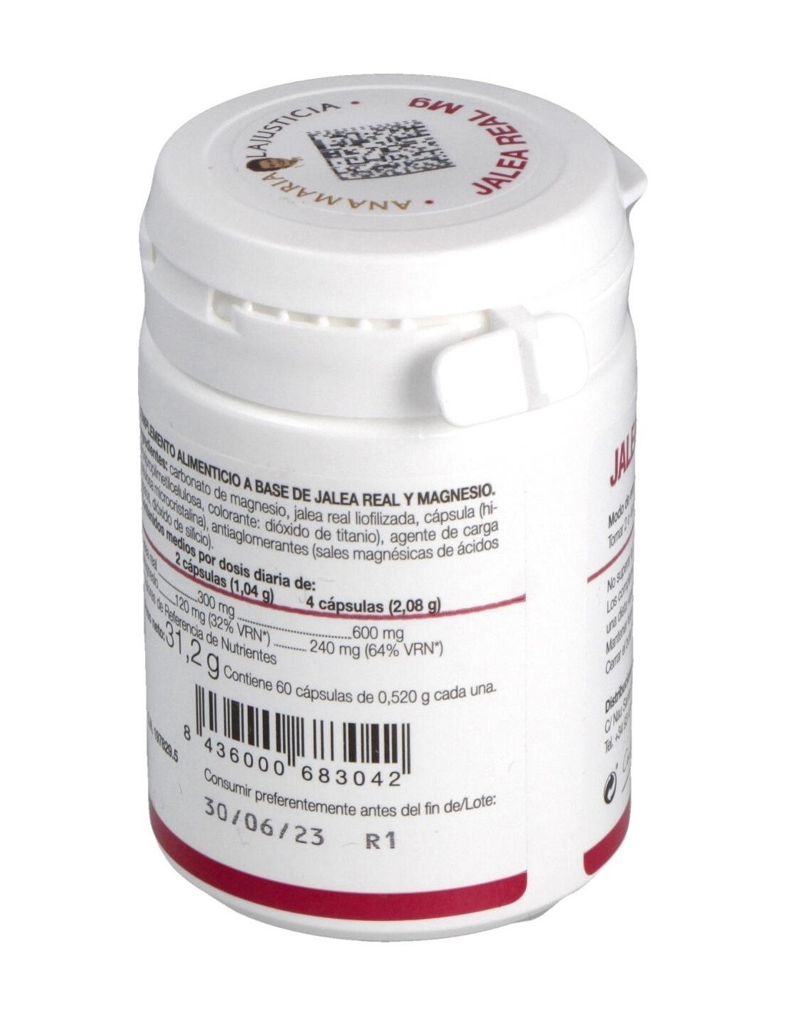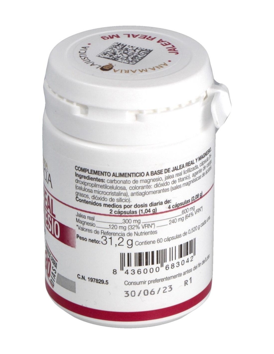 Carbonato De Magnesio, Jalea Real Liofilizada, Cápsula (Hidroxipropilmetilcelulosa, Colorante: Dióxido De Titanio), Agente De Carga (Celulosa Microcristalina), Antiaglomerantes (Sales Magnésicas De Ácidos Grasos, Dióxido De Silicio).