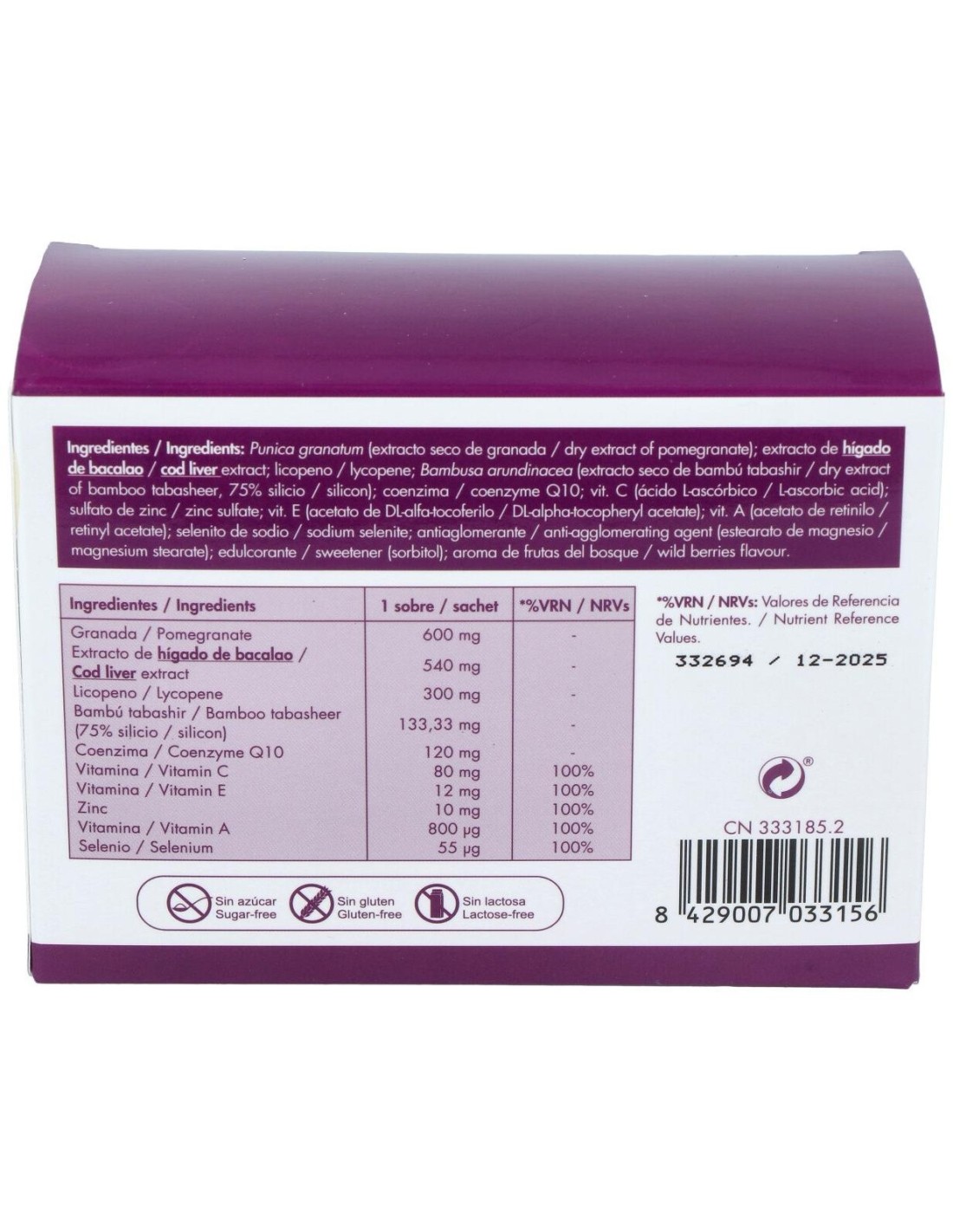 Extracto de granada (Punica granatum) ... 15 g.