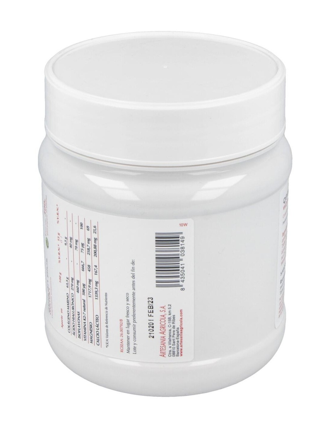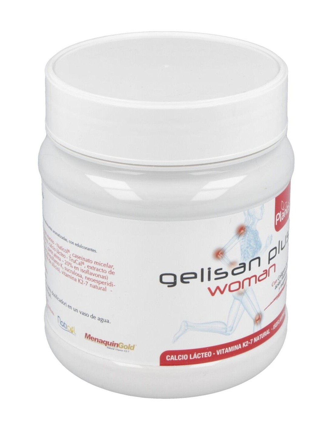 20% en isoflavonas) ácido hialurónico, edulcorantes (acesulfamo K, sucralosa, neoesperidina D.C), antiaglomerante (dióxido de silicio), vitamina K2-7 natural (MenaquinGold®).