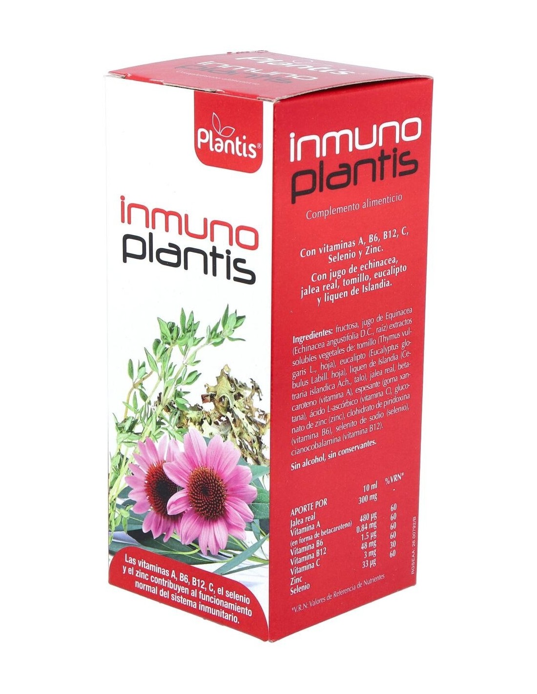 Complemento alimenticio en jarabe formulado a base de jugo de equinácea, jalea real, tomillo y vitaminas. Favorece el funcionamiento normal del sistema inmune. La sinergia de sus ingredientes tiene efecto beneficioso en el mantenimiento de las defensas naturales del organismo. Indicado para adultos.