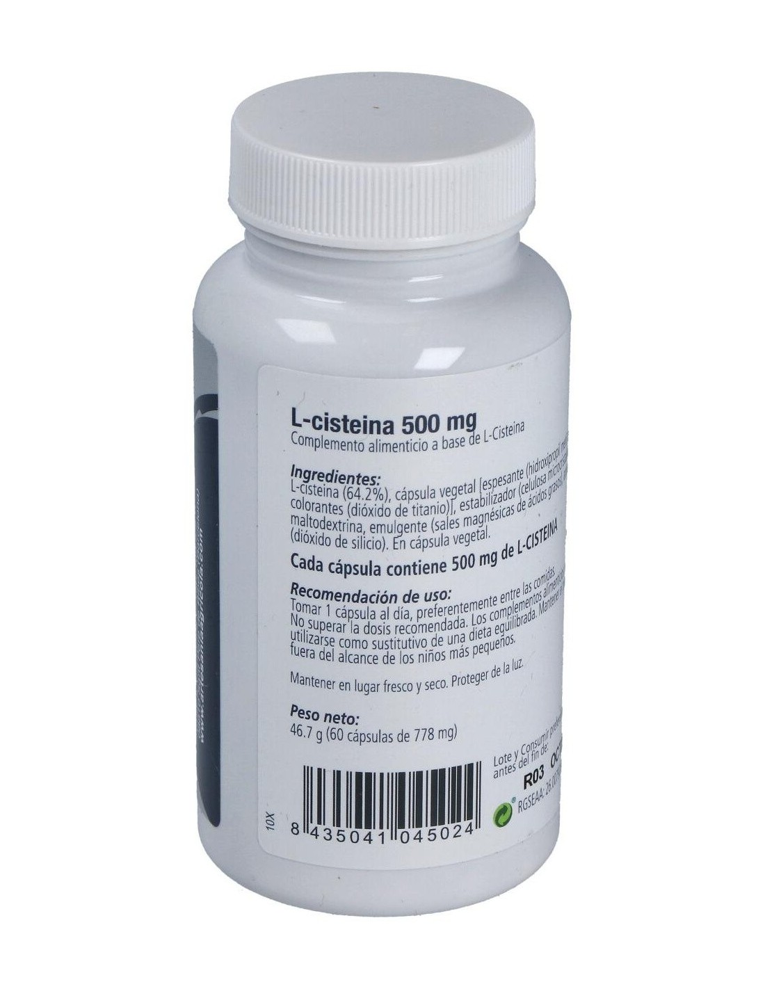 Complemento alimenticio en formato cápsula que ayuda a que mejore el funcionamiento del organismo. Las vitaminas y los minerales como la cisteína son esenciales para el buen funcionamiento. La cisteína (abreviada como Cys) es un aminoácido no esencial, lo que significa que puede ser sintetizado por los humanos. La cisteína se caracteriza por tener azufre conteniendo un grupo tiol (-SH), por tanto está implicado en la desintoxicación principalmente como antagonista de los radicales libres. Formato de 60 cápsulas, 500mg por cápsula.
