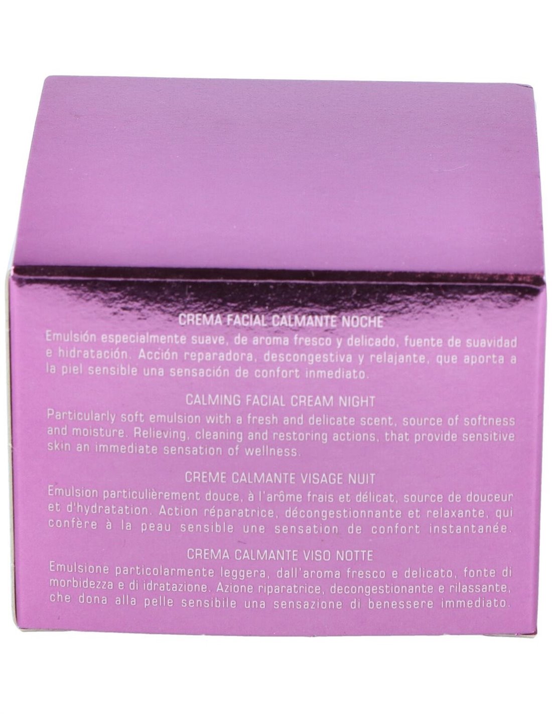 Crema facial que contribuye a calmar la piel durante la noche. Indicado para cuidar las pieles sensibles aportandoles confort y suavidad. Especialmente formulado para aplicar de noche, el momento ideal para reparar la piel y lograr una acción renovadora, descongestiva y relajante. Tiene un agradable aroma delicado, suave y fresco, una fuente de suavidad y humedad. Además contiene unos activos relajantes que la convierten en la mejor aliada por las noches. Ofrece un resultado de una piel hidratada, flexible y radiante.