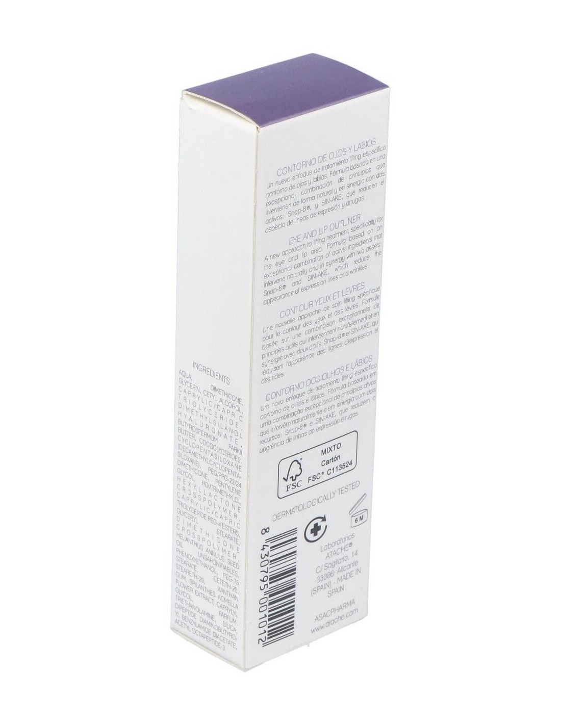 ATACHEIndicado para la flacidez de la piel en el contorno de ojos y labios. Activa las funciones biomecánicas de los fibroblastos del colágeno y elastina, aumentando la elasticidad de la piel.