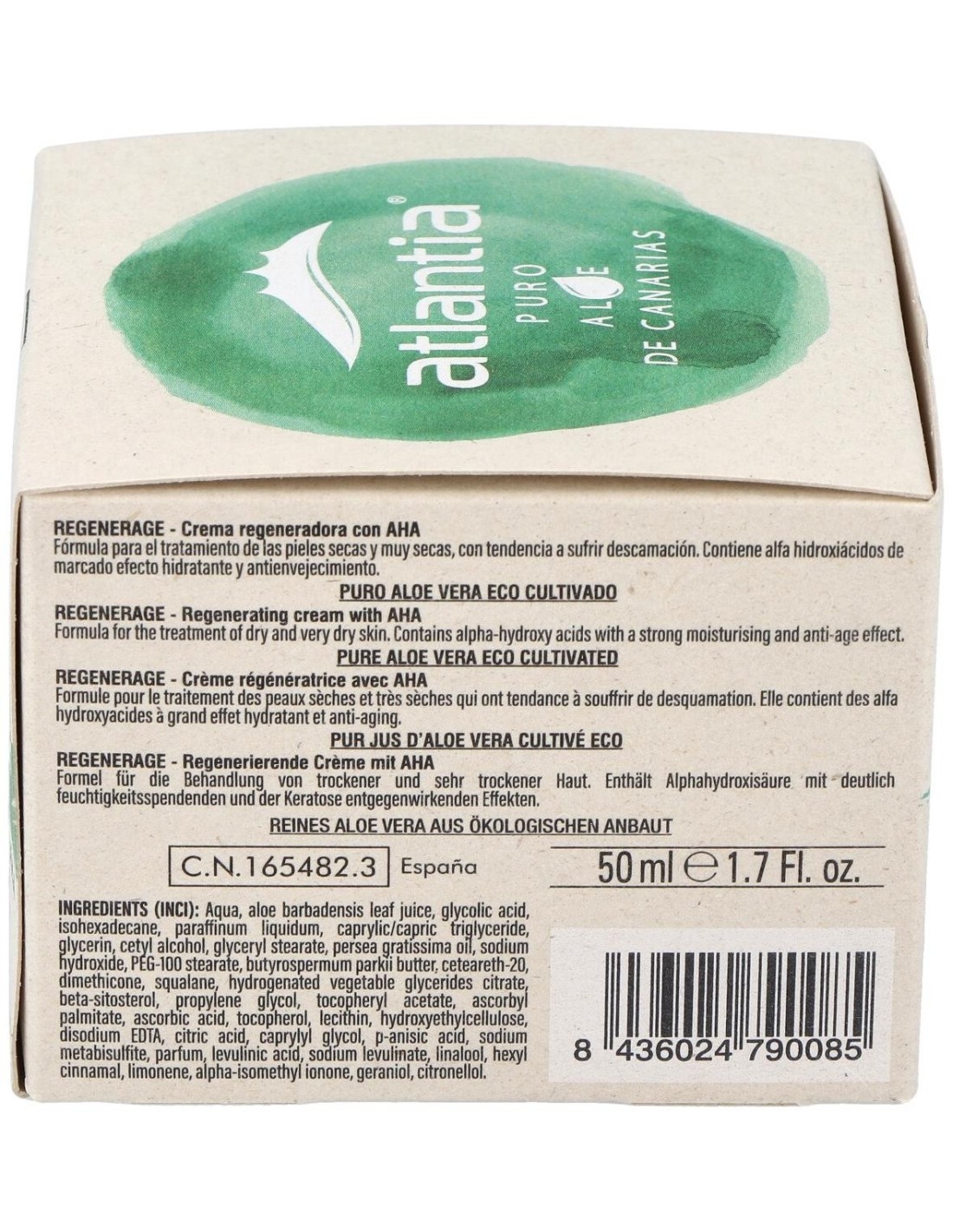 Atlantia Crema Regeneradora con AHA 50ml es una crema de efecto antiedad enriquecida con aloe vera que contribuye a proteger la piel de las agresiones que provocan y aceleran el envejecimiento. Además, contiene alfa hidroxiácidos de marcado efecto hidratante que ayudan a reafirmar la piel y está enriquecida con aceite de aguacate y manteca de karité.; ingredientes humectantes de efecto hidratante. Contiene 50ml.