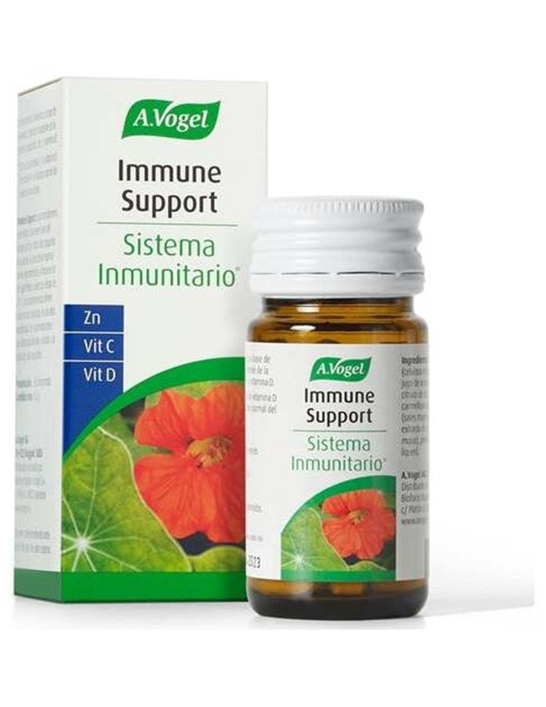 Suplemento a base de Vitamina C natural procedente de la acerola, capuchina, Zinc (en forma de citrato), y Vitamina D El Zinc, la Vitamina C y la Vitamina D contribuyen a la función normal del sistema inmunitario.