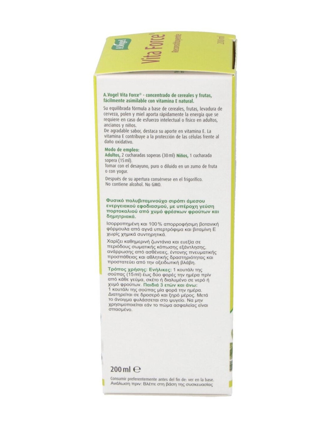 Concentrado natural de frutas y cereales ricos en vitaminas. La vitamina E contribuye a la protección de las células frente al daño oxidativo.