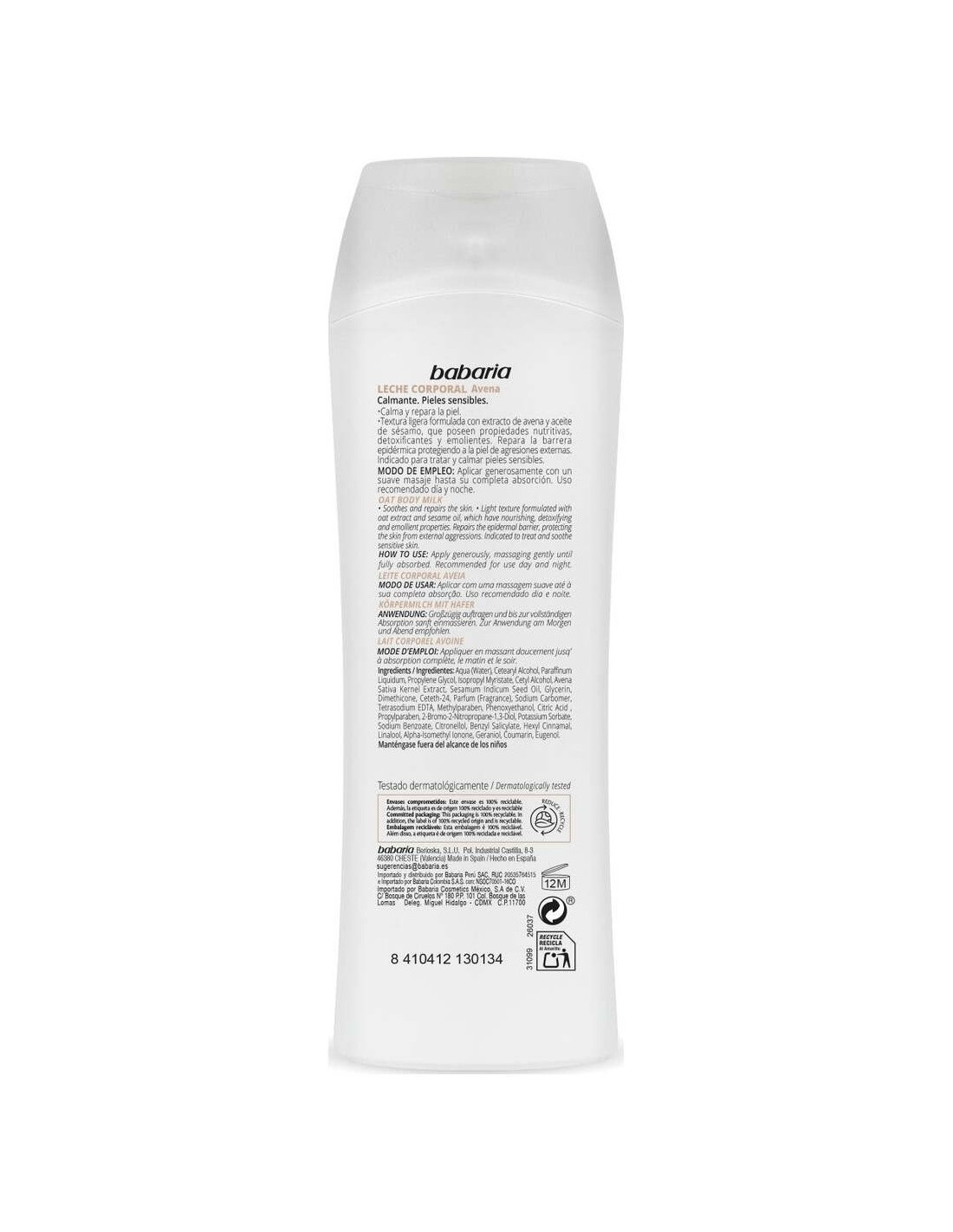 Body Milk Calmante Avena 400 Ml de Babaria
