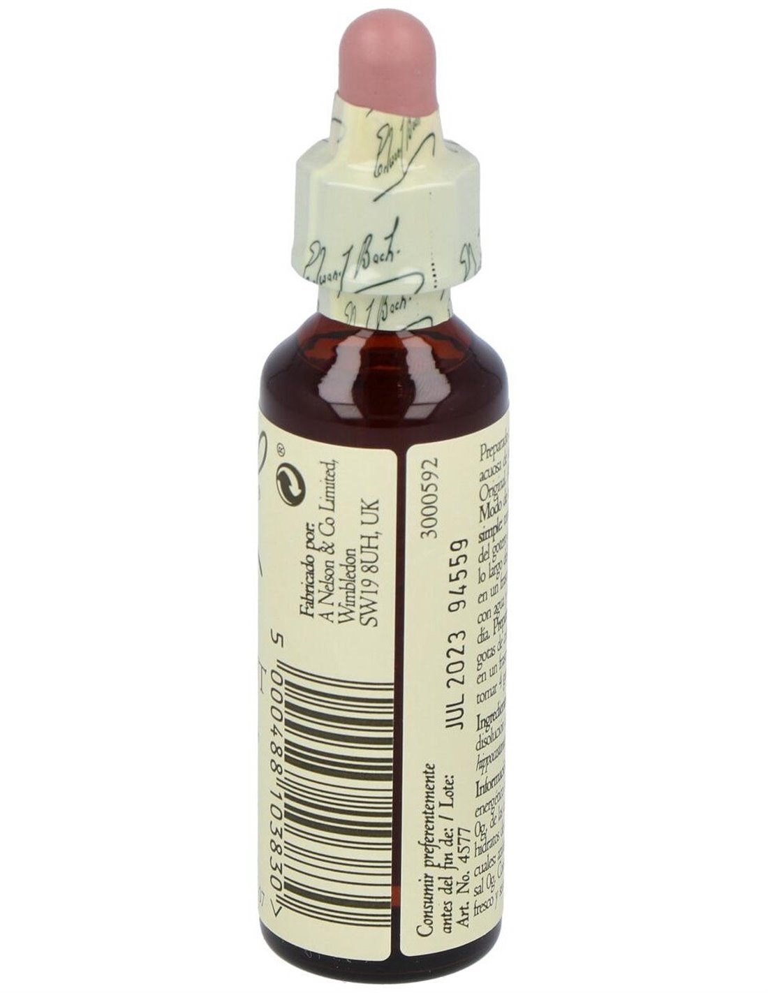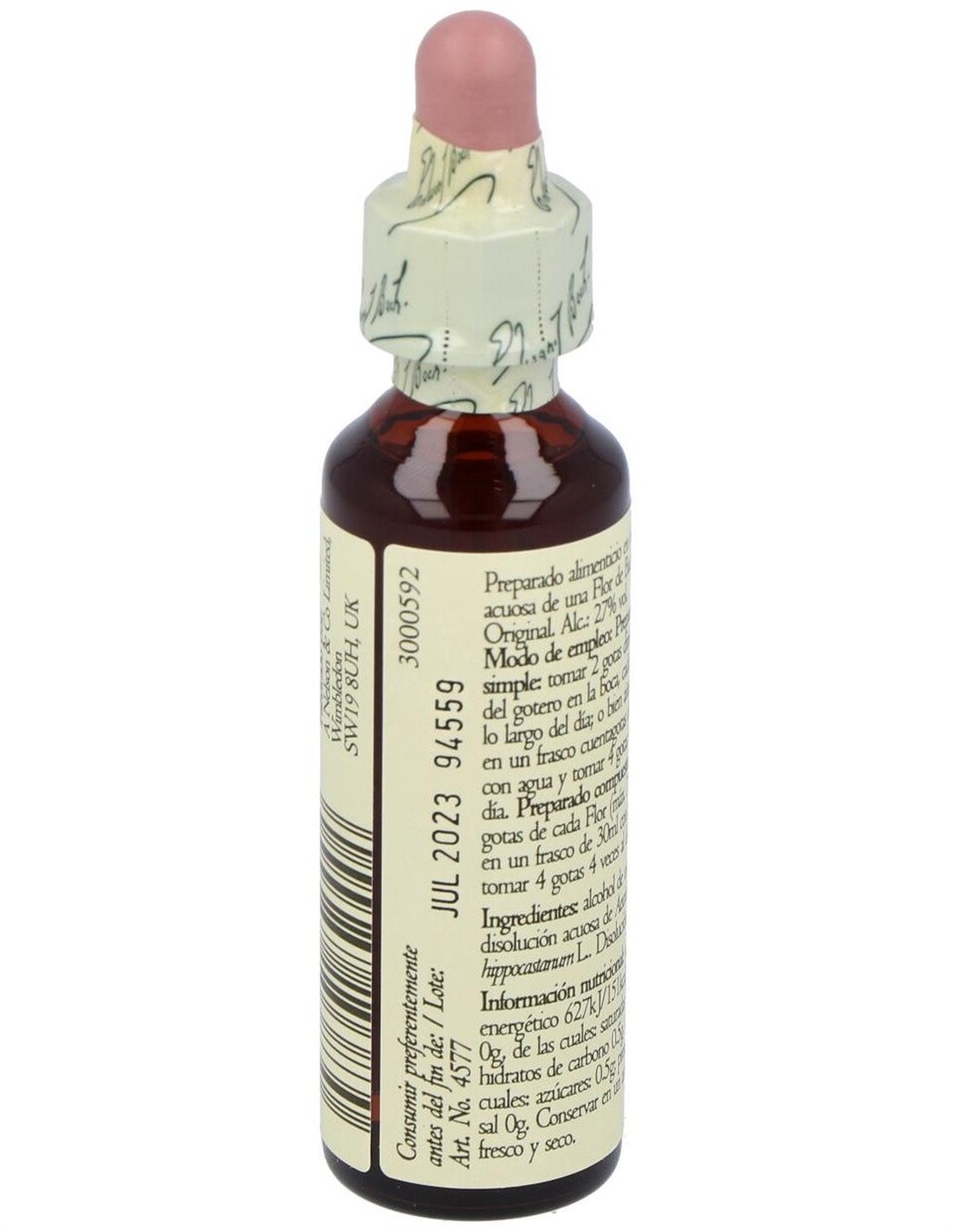 Según el método del Dr. Bach: Indicado para los que no consiguen aprender de la experiencia, y por ello no progresan en la vida. La persona repite una y otra vez los mismos errores, por ejemplo, se enamora continuamente de la persona inadecuada, o sigue trabajando en un puesto inadecuado.