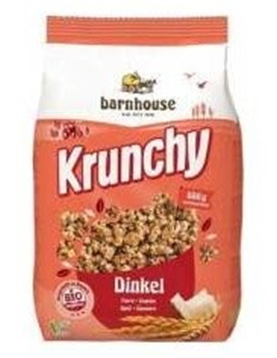 BARNHOUSEMuesli Krunchy espelta con coco. Con arroz inflado y coco. Una mezcla pensada para los amantes de la espelta.