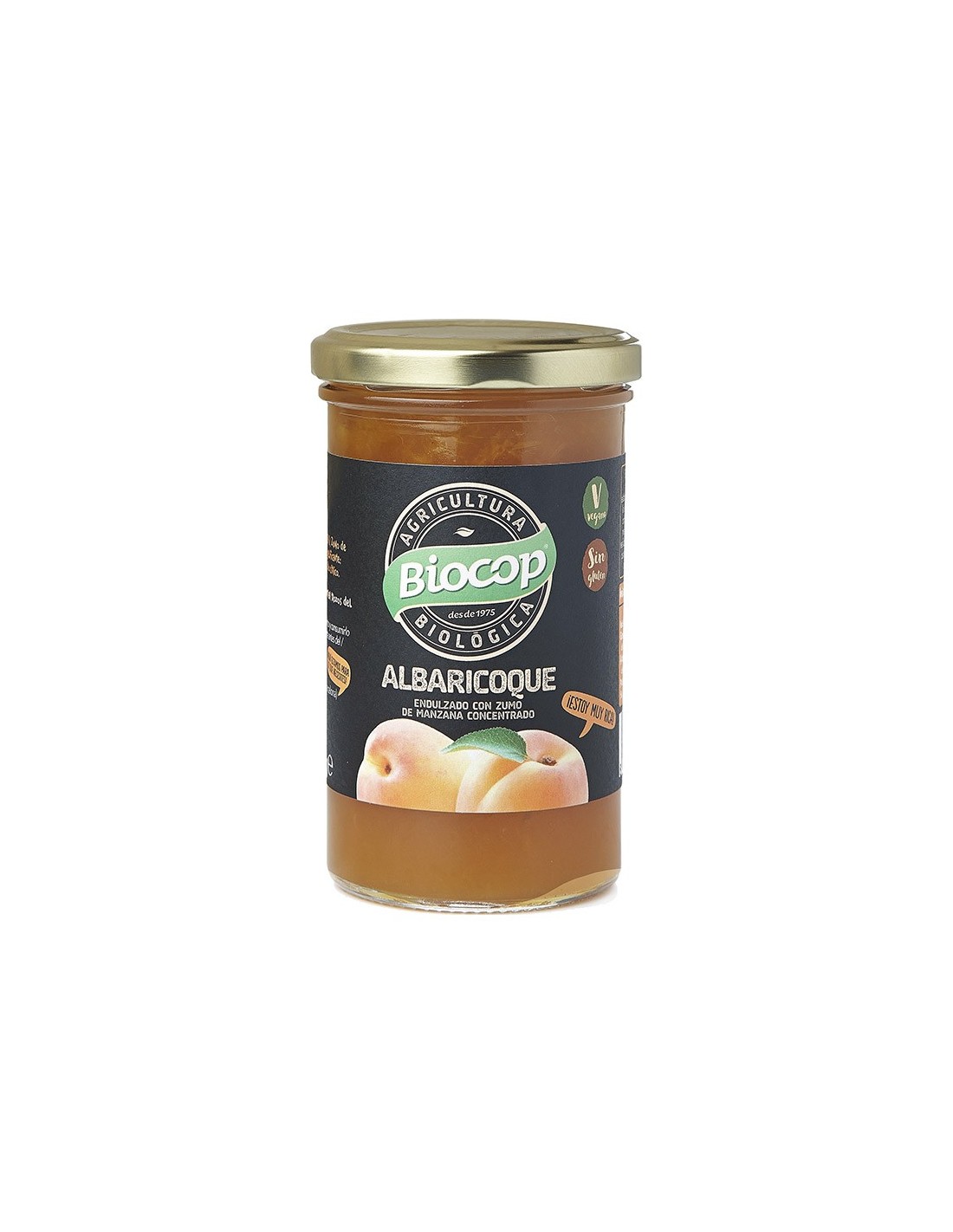 Compota hecha por Biocop, con el objetivo de aportar nutrición y sabor para quienes mantengan una dieta baja en azúcares, gasas trans o productos procesados. Consiste en un puré de fruta de albaricoques frescos; cultivados mediante los procesos de la agricultura biológica. Es un tentempié bajo en calorías con diferentes tipo de usos para adaptarse a consumidores diferentes. Puede utilizarse para acompañar desayunos, para untar en tostadas, o como merienda en niños y deportistas. Los albaricoques fueron cocidos a fuego mínimo para no alterar su aporte nutritivo ni aroma. No se utilizaron conservantes animales, por lo que es un producto apto para veganos y dietas de todo tipo. Gracias a sus valores equilibrados, es una forma ideal de acompañar las comidas de los niños y niñas de casa. No apto para personas que sean alérgicas a este tipo de fruta.