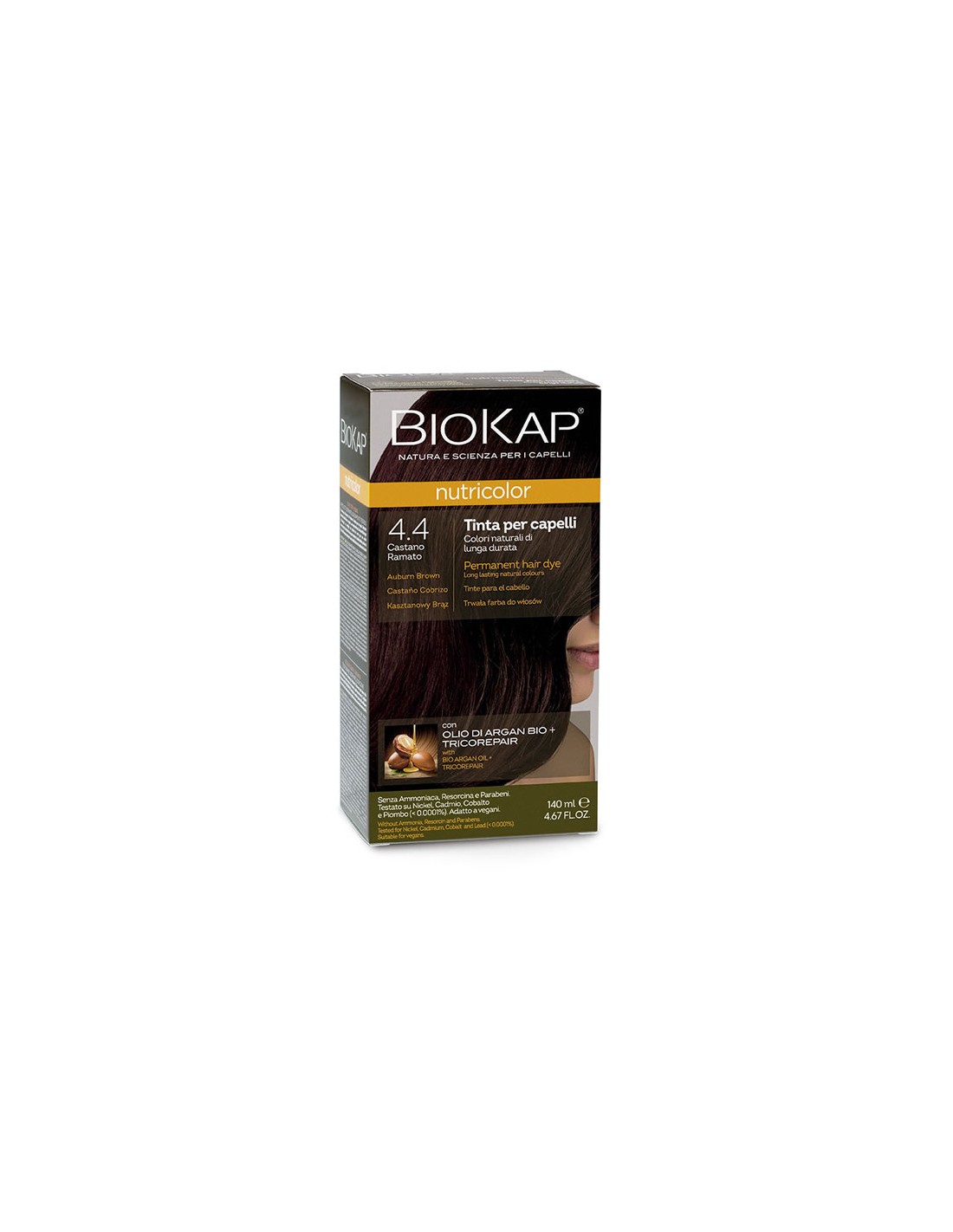 Pack 12 Uds. Nutricolor 4.4 Castaño Cobrizo 140 ml de Biokap