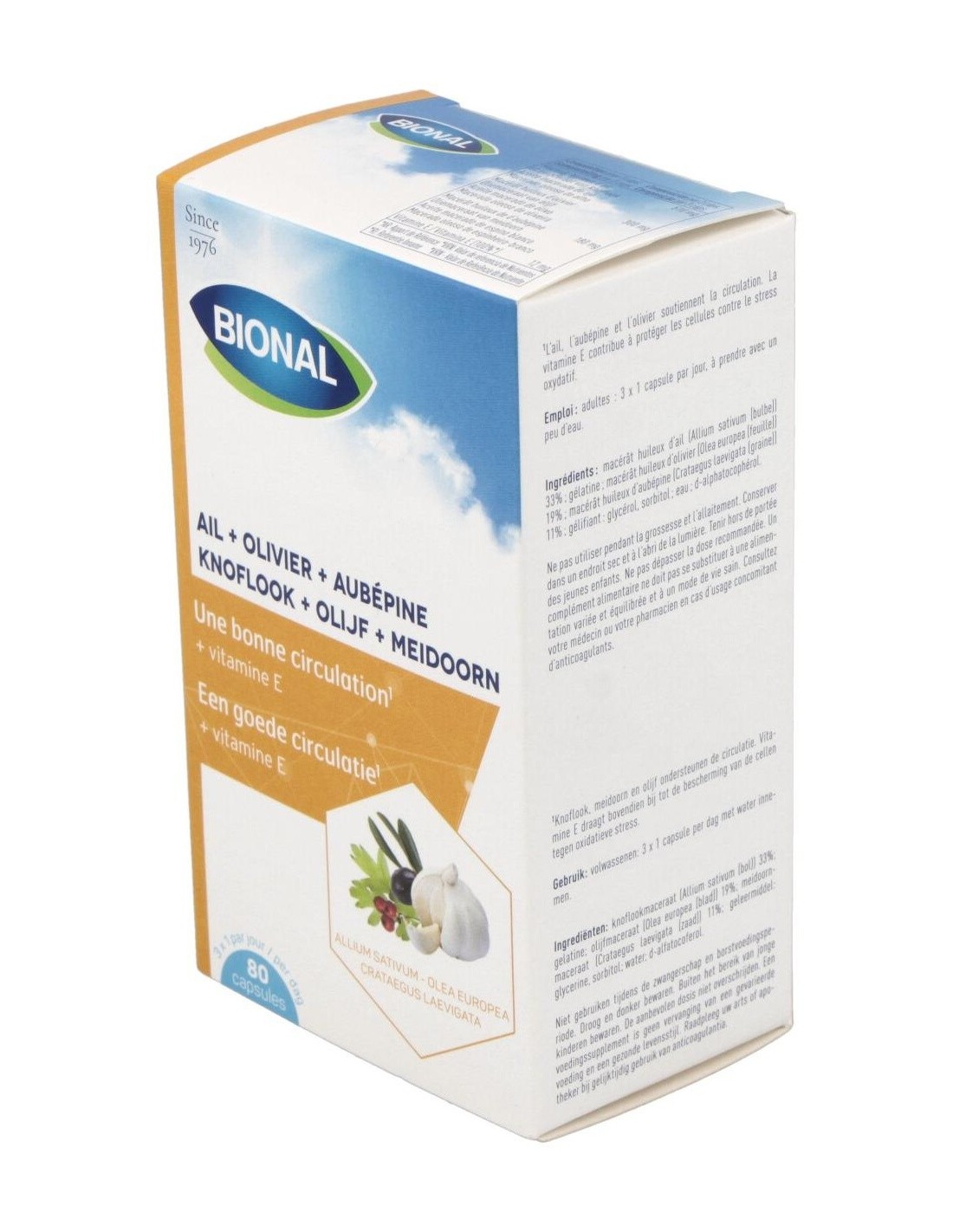 Aceite macerado de ajo (Allium sativum, aceite de girasol) 33%: gelatina: aceite macerado de hoja de olivo (Olea europea, aceite de girasol) 19%: aceite macerado de espino blanco (Crataegus laevigata, aceite de girasol) 11%: gelificante: glicerina: d-alfatocoferol.