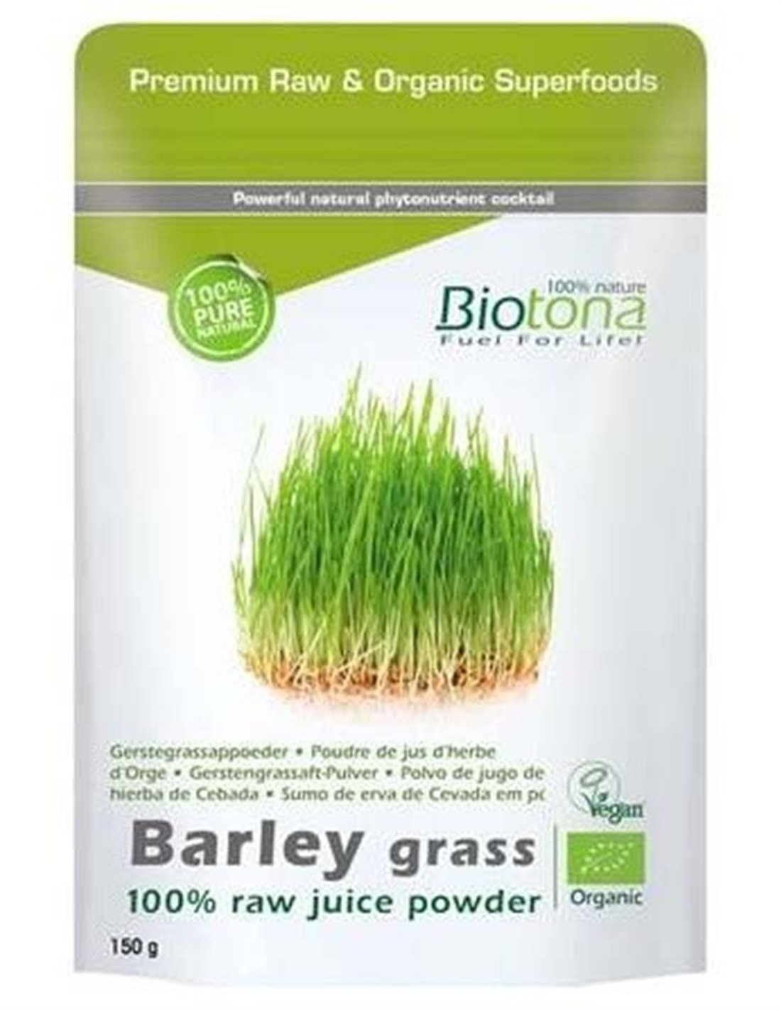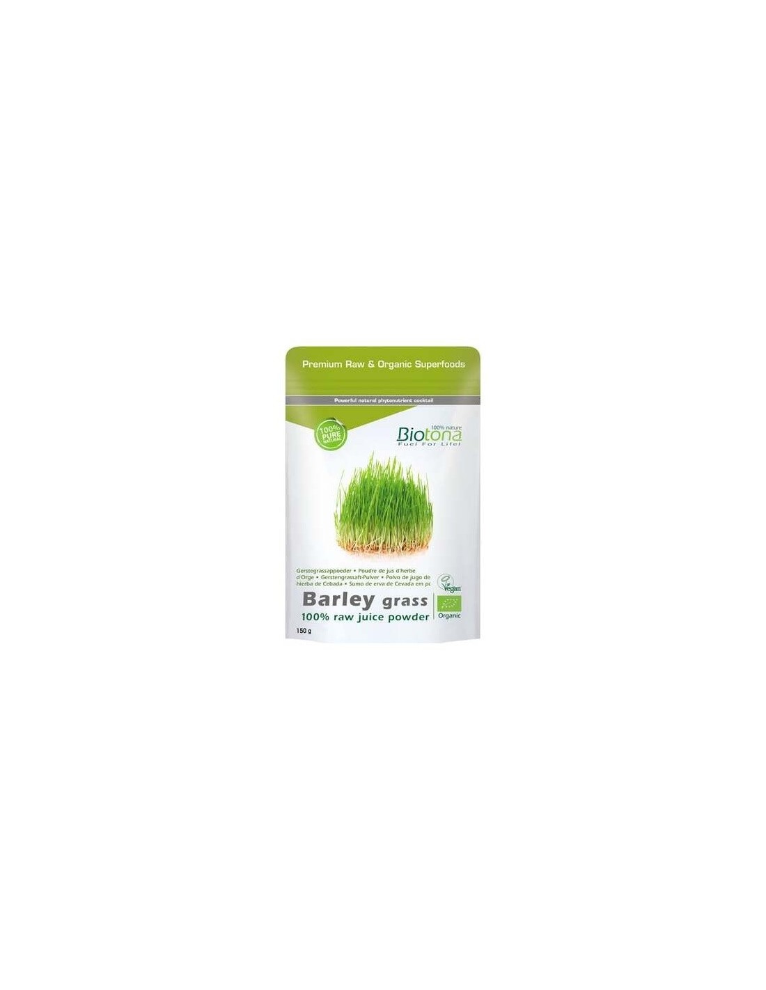 BIOTONABiotona bio polvo de jugo de hierba de Cebada Raw se elabora a base de brotes tiernos de cebada recolectados inmediatamente antes de la formación de los granos, el momento en el que el contenido de fitonutrientes es mas elevado. El polvo se obtiene gracias al procedimiento EverRAW (siempre fresco), un proceso de vanguardia, único en su género que permite garantizar el frescor y la calidad. El jugo es prensado y secado en 2 minutos mientras que la temperatura no supera la del organismo. El proceso desde la recolección a la obtención del polvo no lleva mas de dos horas en total y conserva todas las vitaminas, minerales y enzimas de la hierba de trigo. Producto vegano.