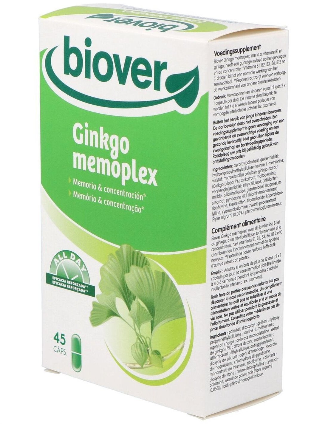 Ginkgo (memoria y concentración) memoplex 45 capsulas Biover
