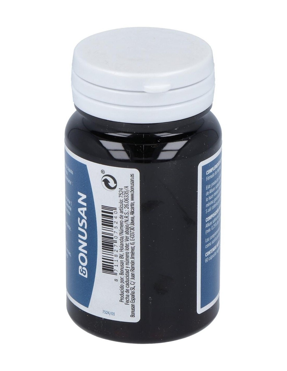 BONUSAN· Complemento alimenticio en formato cápsula, a base de extracto de ajo negro, que tiene un efecto beneficioso sobre la presión sanguínea y el colesterol. Ayuda a aumentar la resistencia del organismo y protege contra el envejecimiento por los radicales libres.