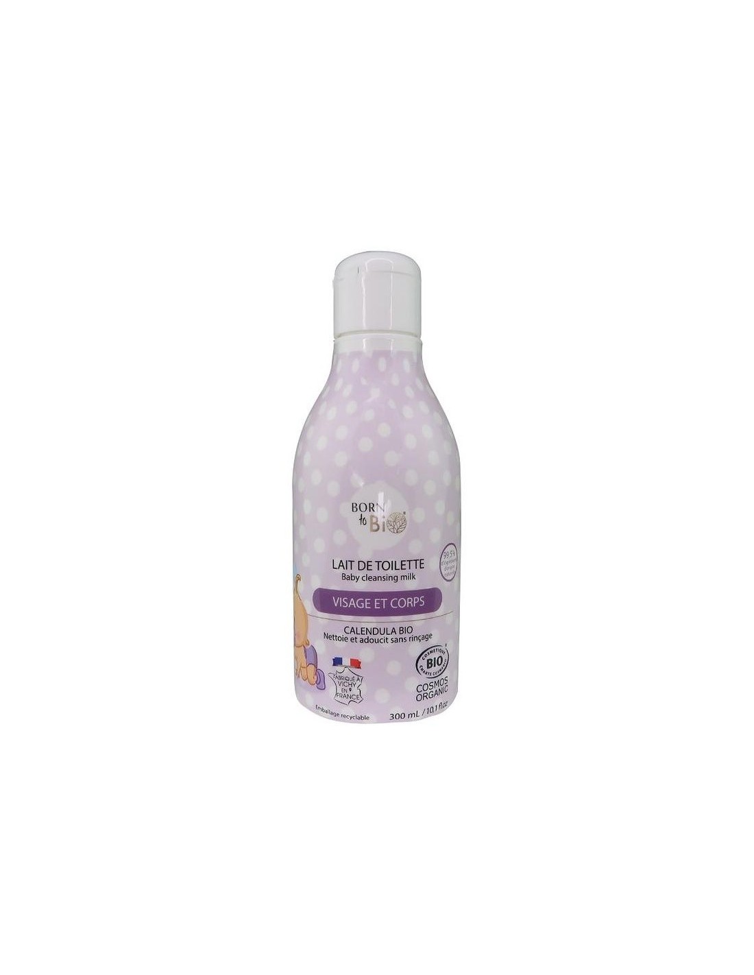 BORN TO BIOCon caléndula orgánica y extracto de cebada orgánica. Especialmente desarrollada para la piel frágil de los bebés, esta leche limpiadora está diseñada para limpiar suavemente el cuerpo, la cara y las nalgas del bebé. Extra suave, sin aceite esencial, protege la piel de la irritación y la sequedad. Cosmos Organic.
